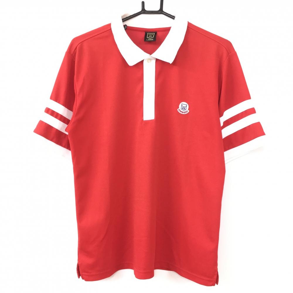 【美品】エドウィンゴルフ 半袖ポロシャツ レッド プリントロゴ レディース SMALL ゴルフウェア EDWIN GOLF
