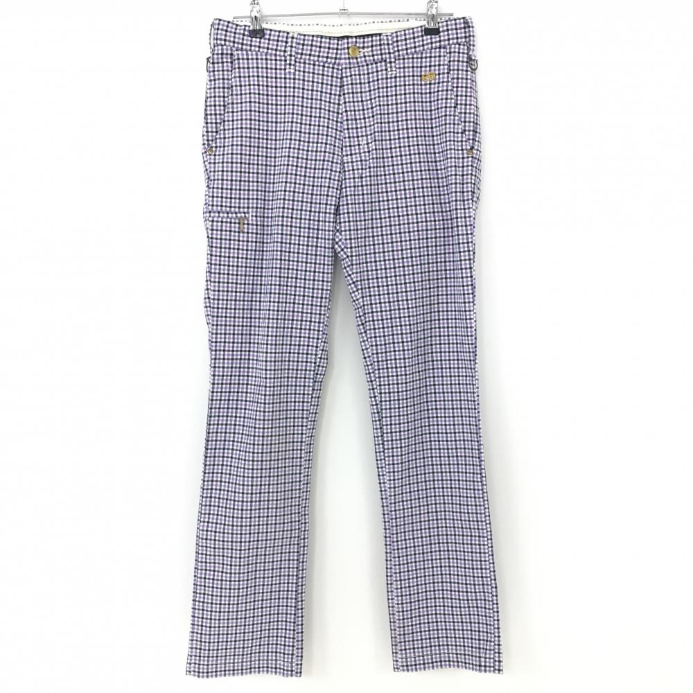 【美品】エドウィン パンツ パープル×ネイビー ギンガムチェック サッカー生地 ストレッチ メンズ M ゴルフウェア EDWIN GOLF
