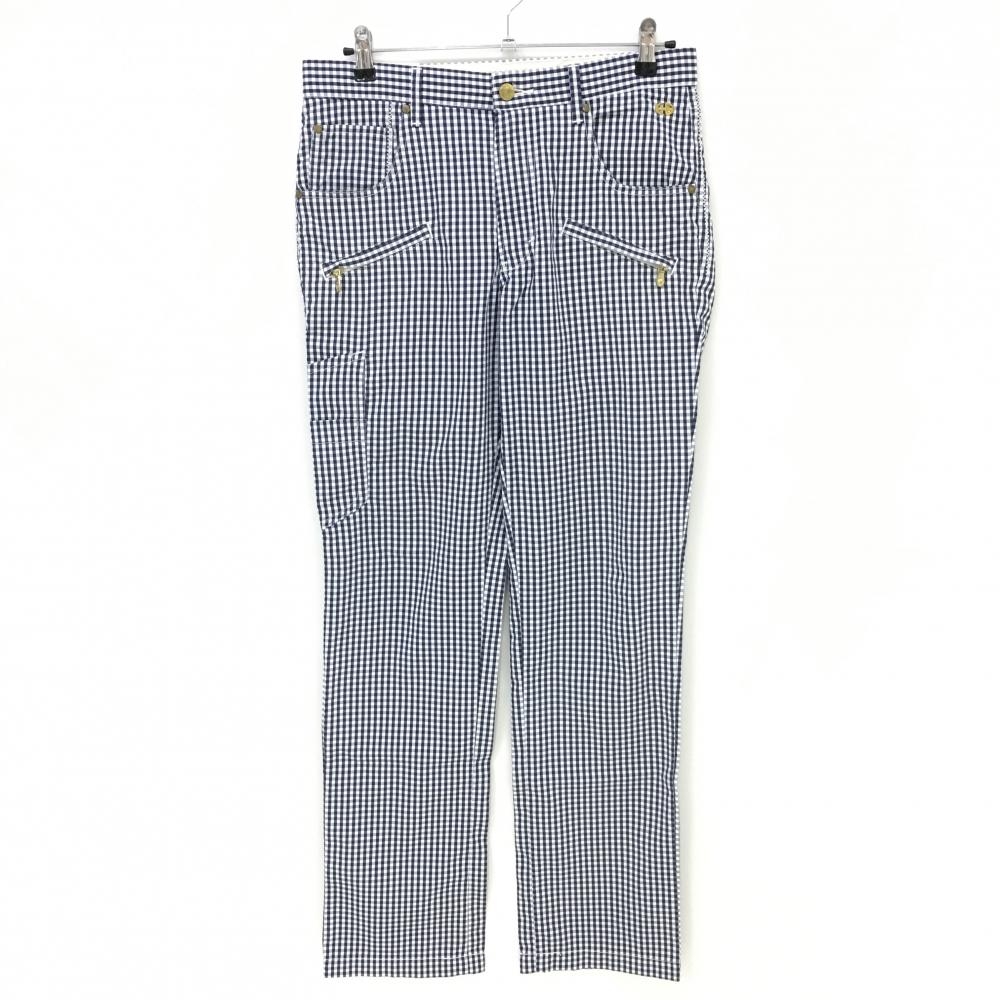 【美品】エドウィンゴルフ 半端丈パンツ ネイビー×白 チェック レディース S ゴルフウェア EDWIN GOLF