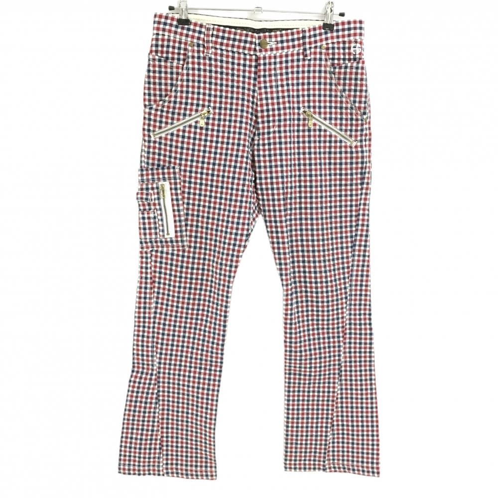 エドウィンゴルフ パンツ レッド×ネイビー×白 チェック サッカー生地 メンズ L ゴルフウェア EDWIN GOLF