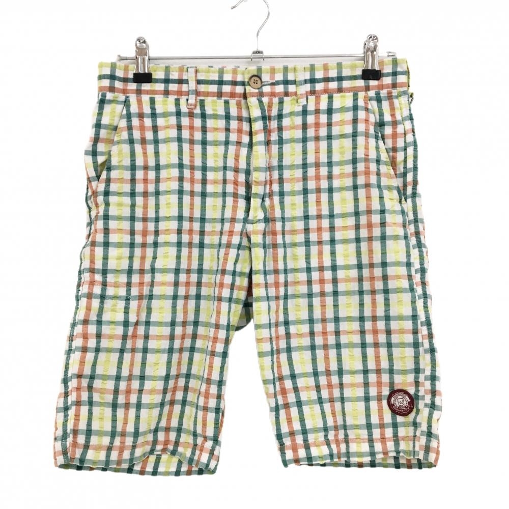 【美品】エドウィン ハーフパンツ アイボリー×マルチカラー チェック サッカー調 メンズ SMALL ゴルフウェア EDWIN GOLF