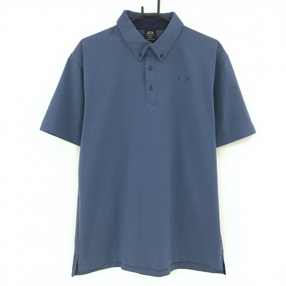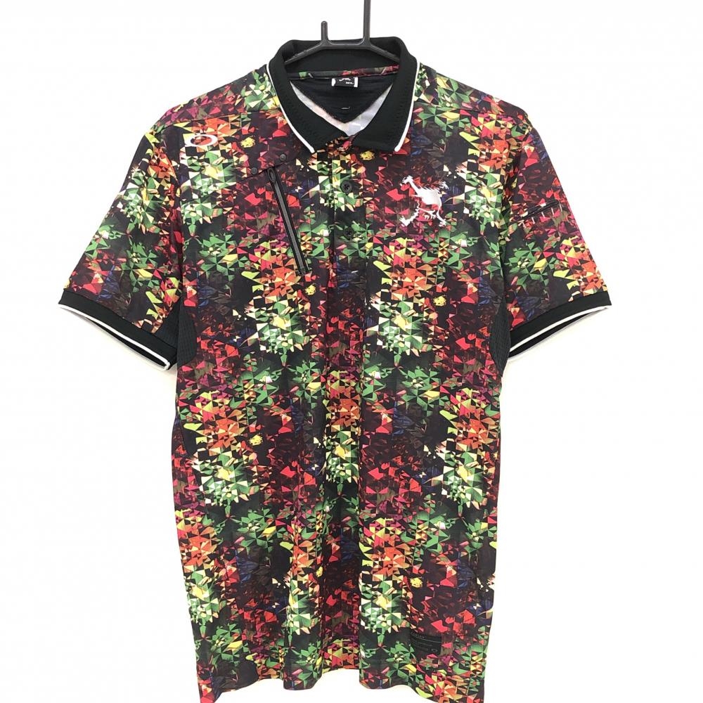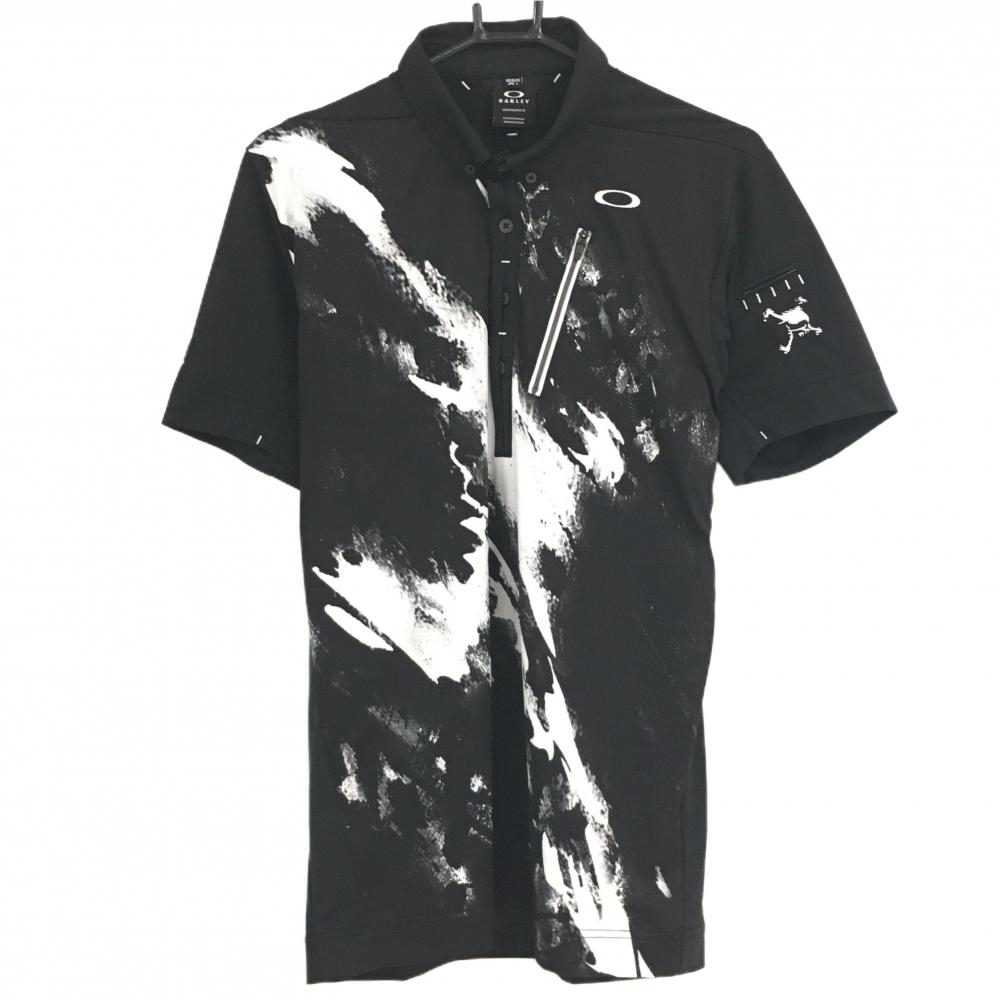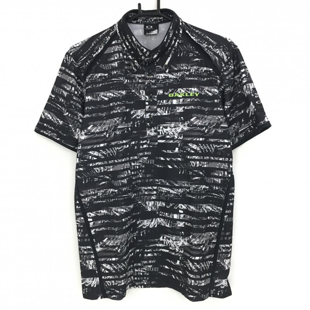 【超美品】オークリー 半袖ポロシャツ ダークグレー×黒 総柄地模様 袖下メッシュ調 ロゴ刺しゅう メンズ M ゴルフウェア Oakley
