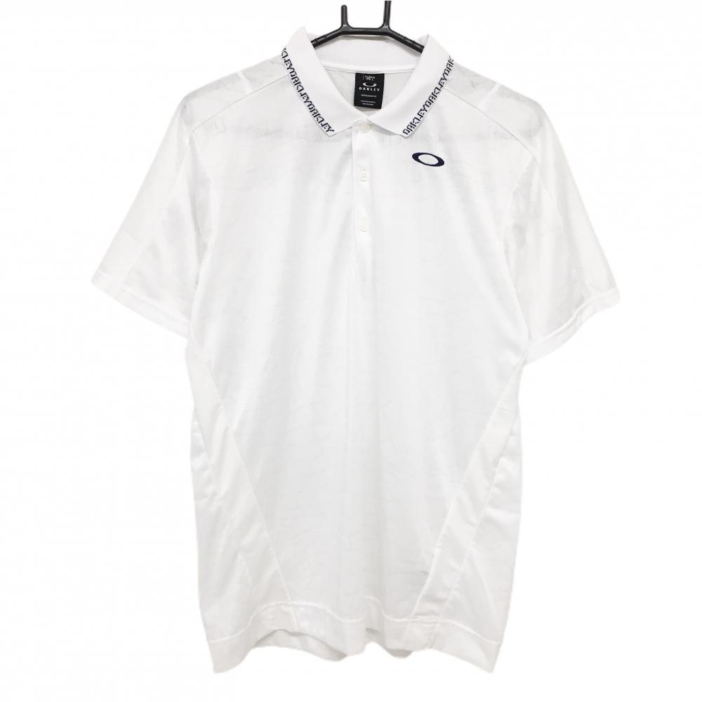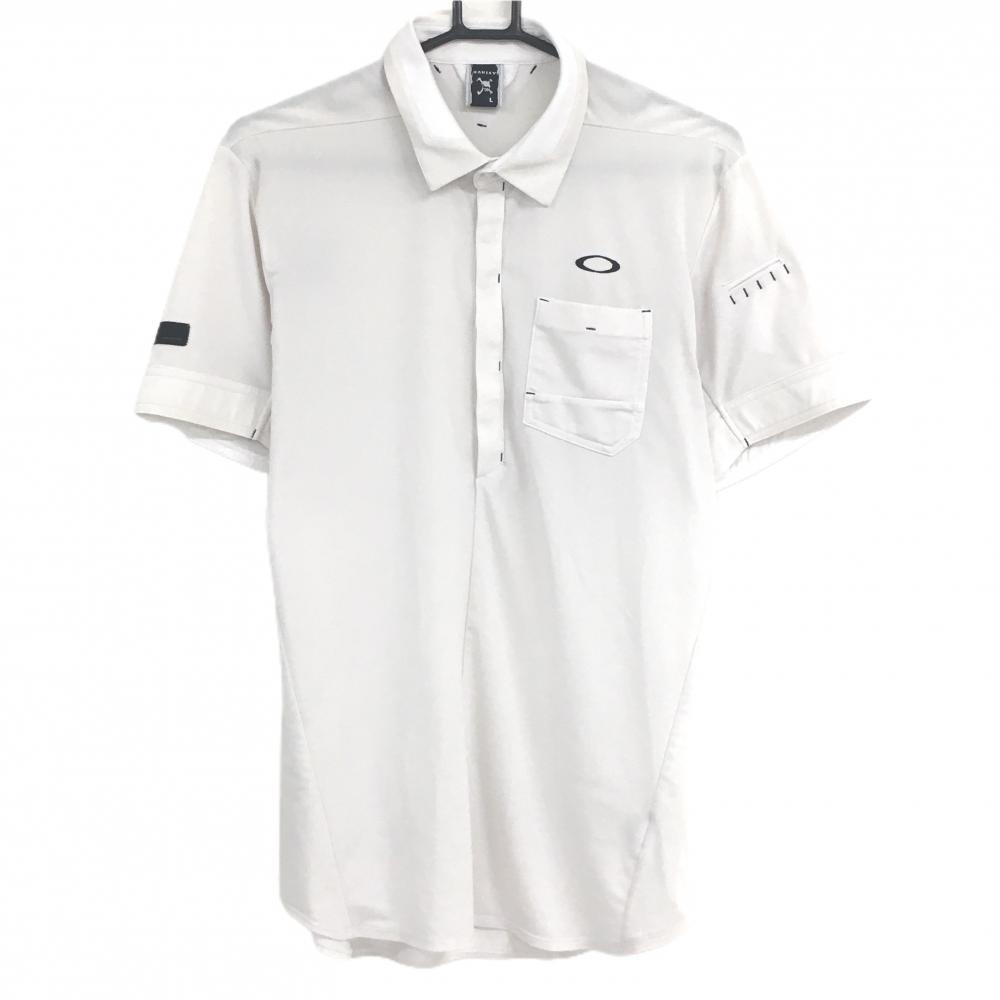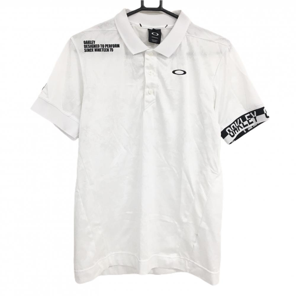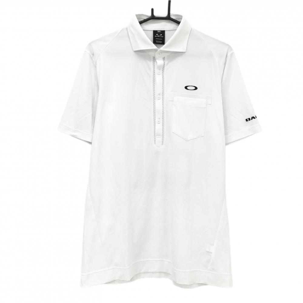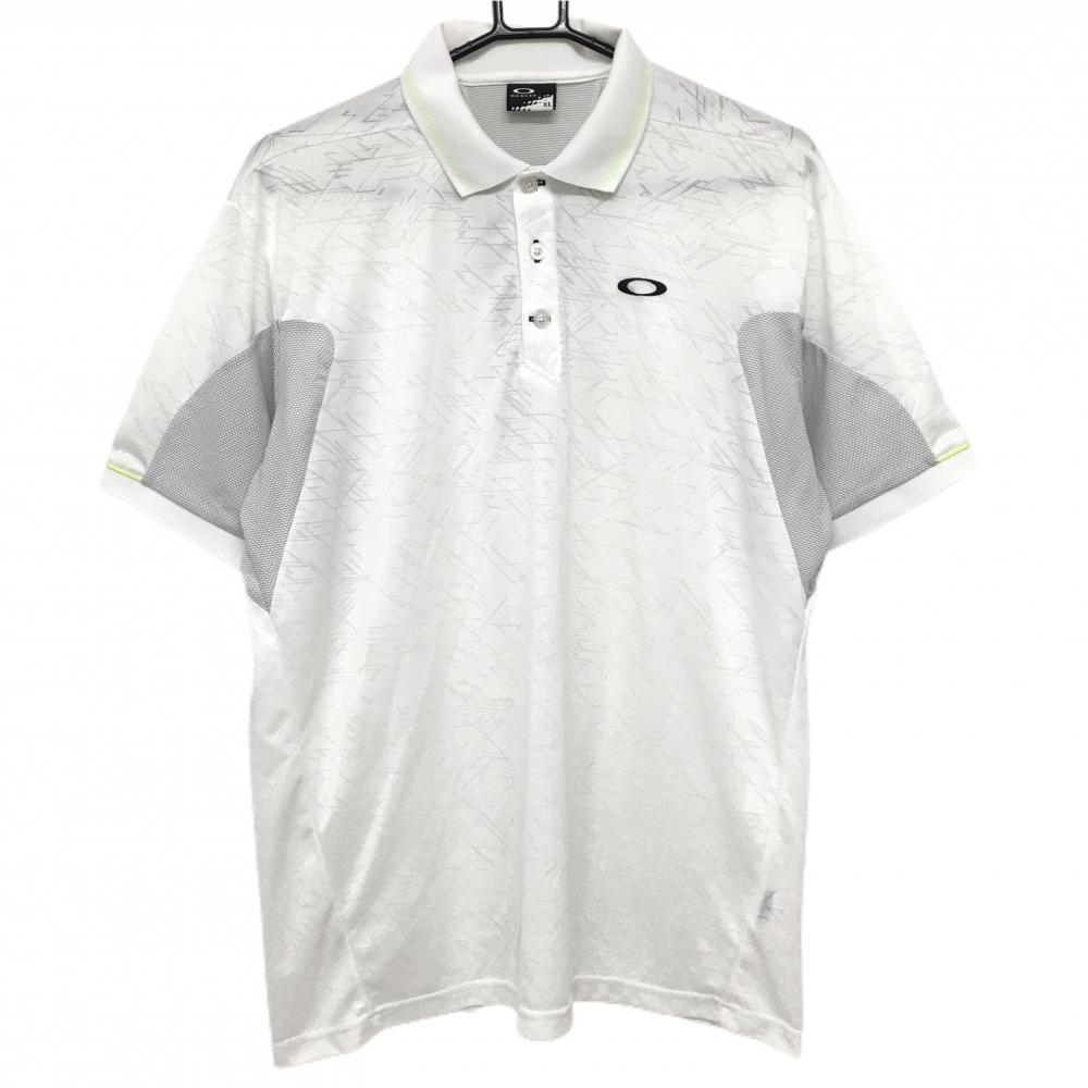 オークリー 半袖ポロシャツ 白×グレー 地模様 胸ポケット ティー装着可 メンズ M ゴルフウェア Oakley