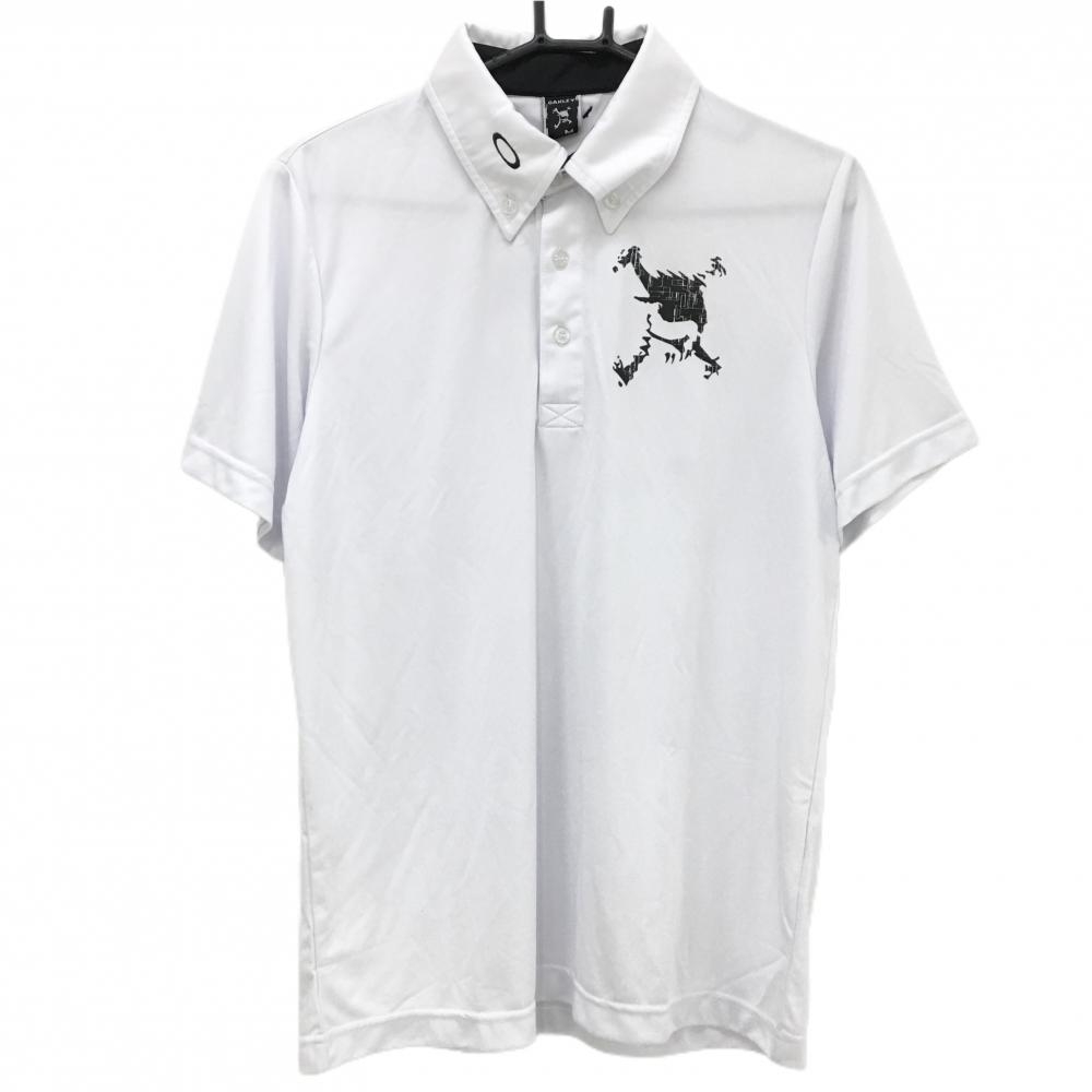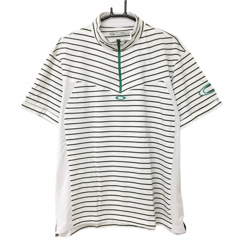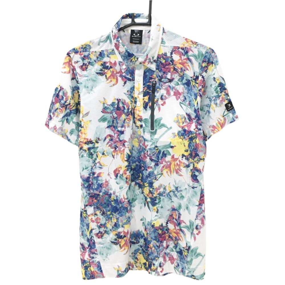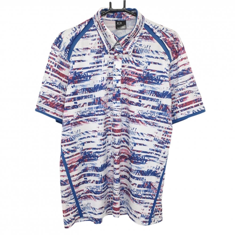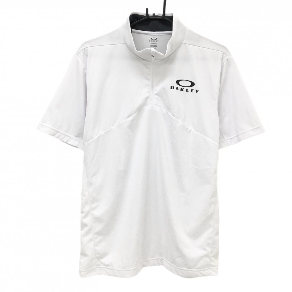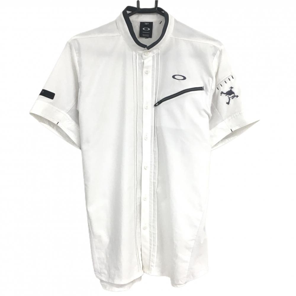 オークリー 半袖ポロシャツ 白×グレー 地模様 胸ポケット ティー装着可 メンズ M ゴルフウェア Oakley