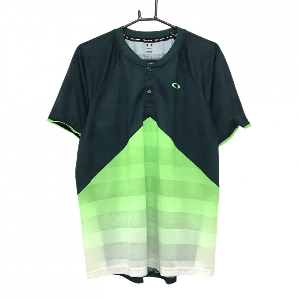 【美品】オークリー 長袖ポロシャツ 黒×グレー 袖プリント ハーフジップ ボタンダウン メンズ XL ゴルフウェア Oakley