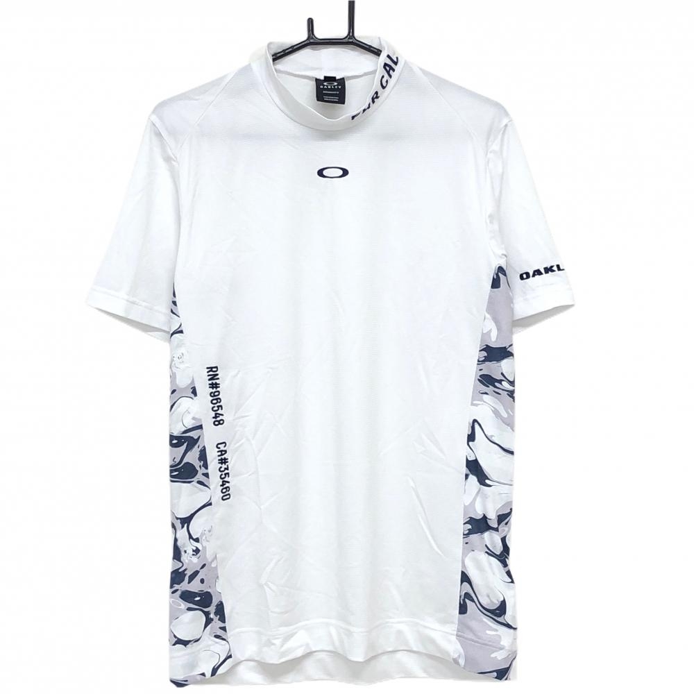 オークリー 長袖タートルネックシャツ 白 ロゴグレー 袖・後ろ地模様 ネックボタン メンズ XL ゴルフウェア Oakley