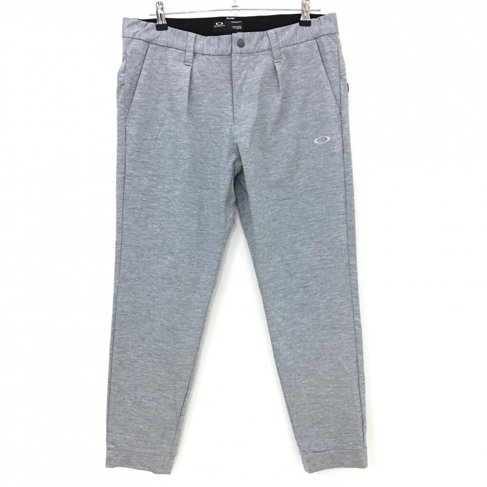 【美品】オークリー パンツ 杢グレー ロゴ刺しゅう ストレッチ コットン混 メンズ 33 ゴルフウェア Oakley