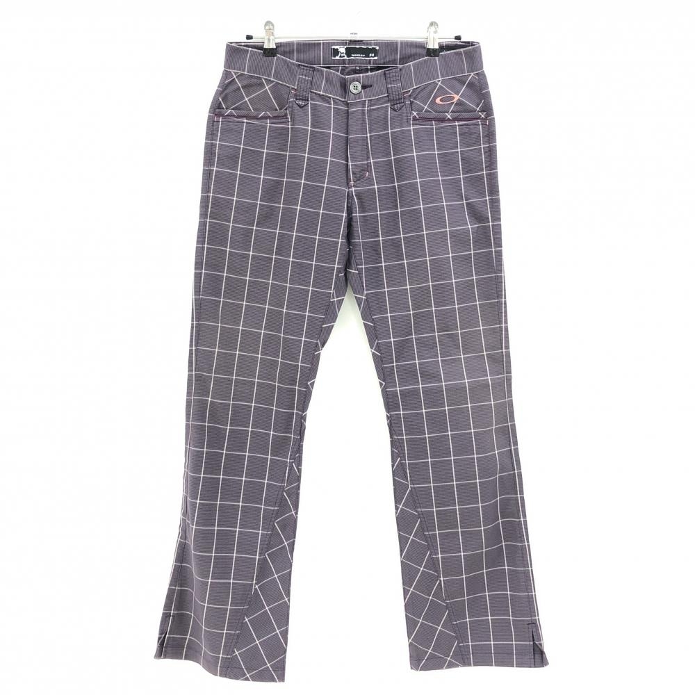 【超美品】オークリー カーゴパンツ パープル×グレー チェック 複数ポケット ティー装着可 レディース M ゴルフウェア Oakley