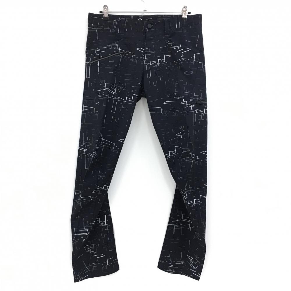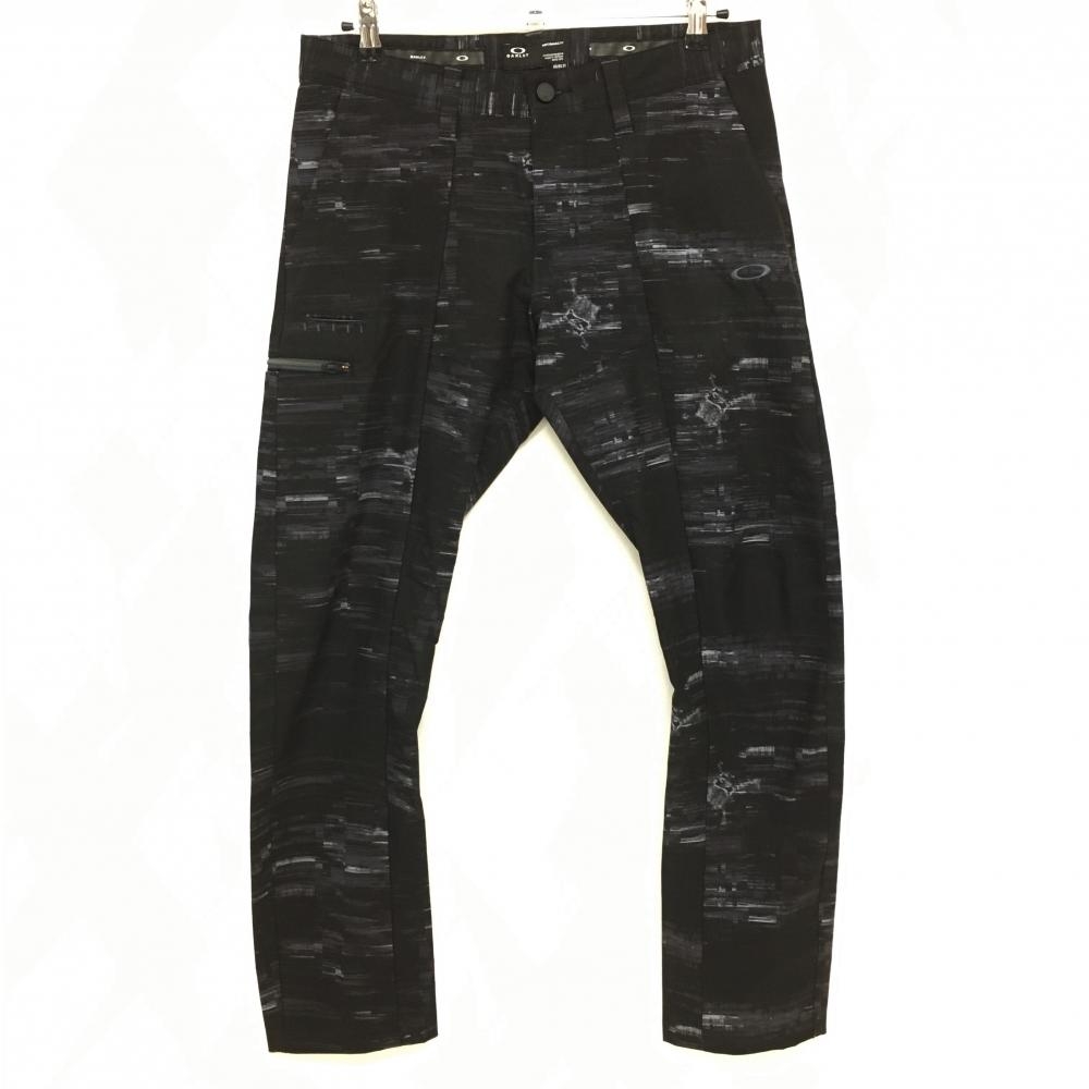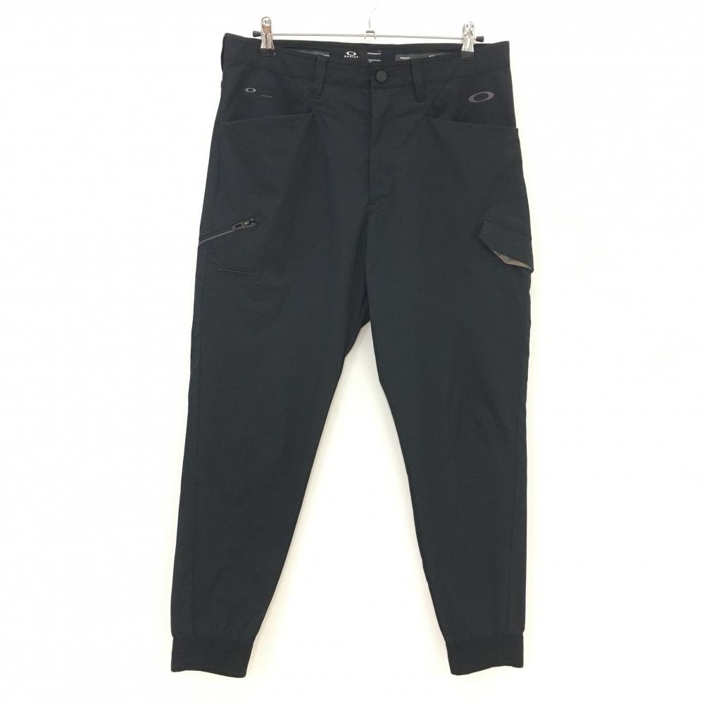 【美品】オークリー パンツ 黒 複数ポケット ロゴグレー メンズ 32 ゴルフウェア Oakley