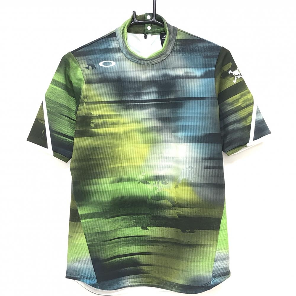 オークリー 半袖ポロシャツ イエロー×白 ロゴ刺しゅう メンズ M ゴルフウェア Oakley