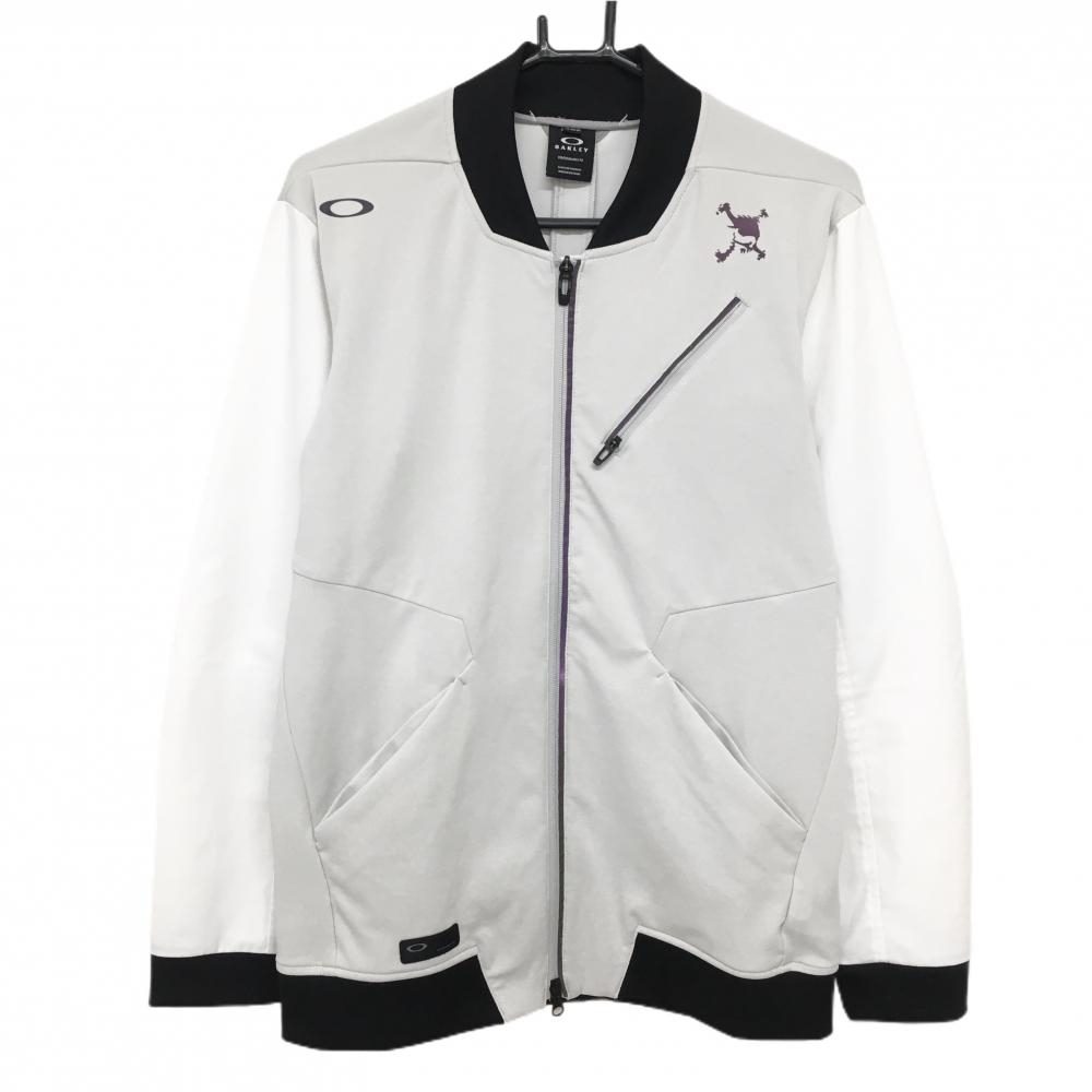 オークリー ジャケット 白 一部メッシュ調 ロゴグレー 裾ドローコード メンズ L ゴルフウェア Oakley