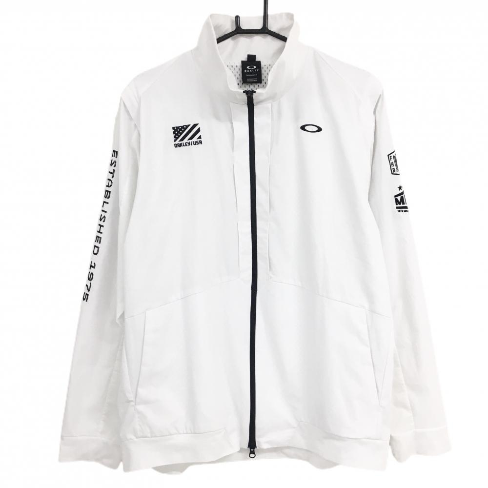 【超美品】オークリー ジャケット 白×黒 ナイロン100% 薄手 バックロゴ メンズ L ゴルフウェア Oakley