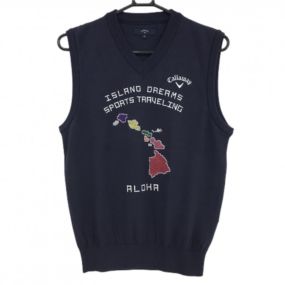 【美品】キャロウェイ ニットベスト ブルー系×ネイビー ロゴ刺しゅう ポリエステル100% メンズ L ゴルフウェア Callaway