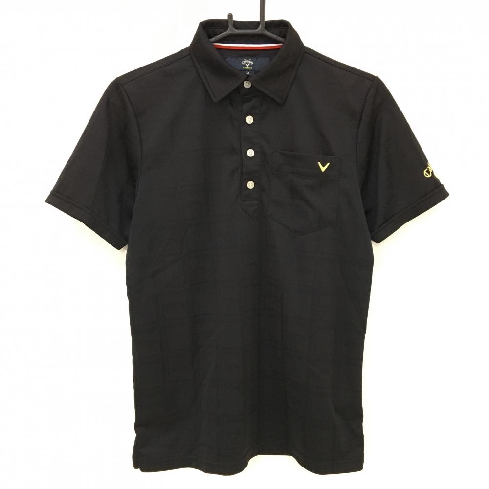 【新品】キャロウェイ 長袖ポロシャツ 黒×白 ストライプ ボタンダウン 胸ポケット レディース M ゴルフウェア Callaway