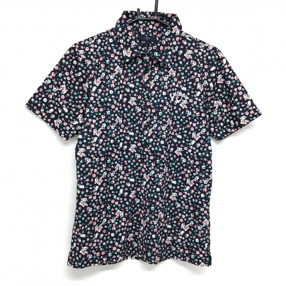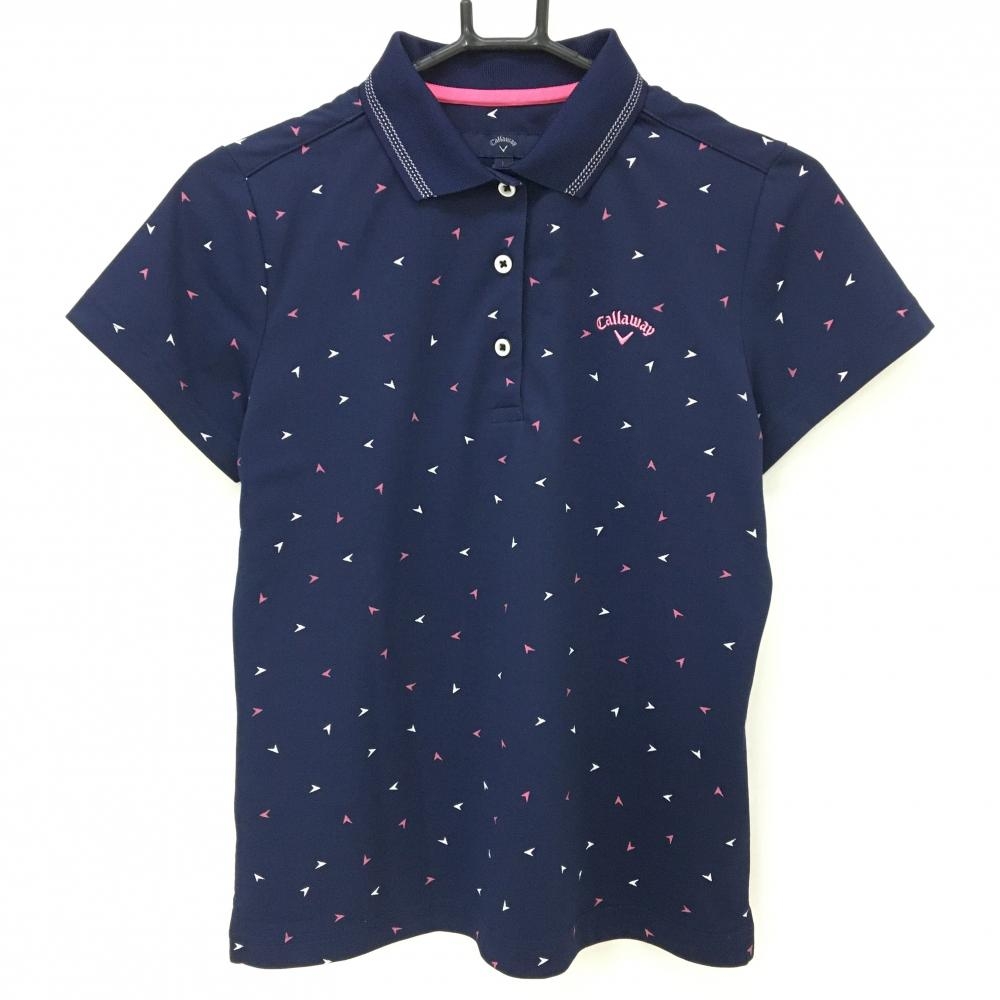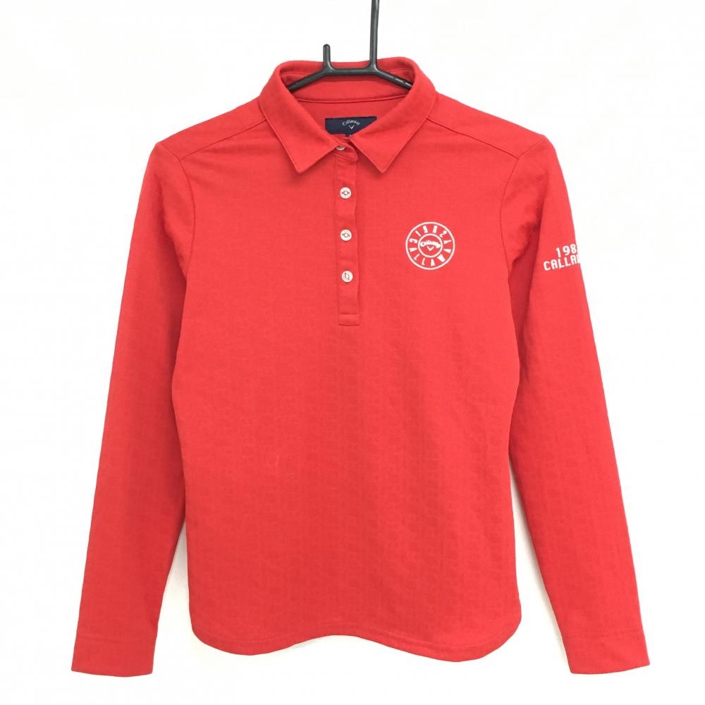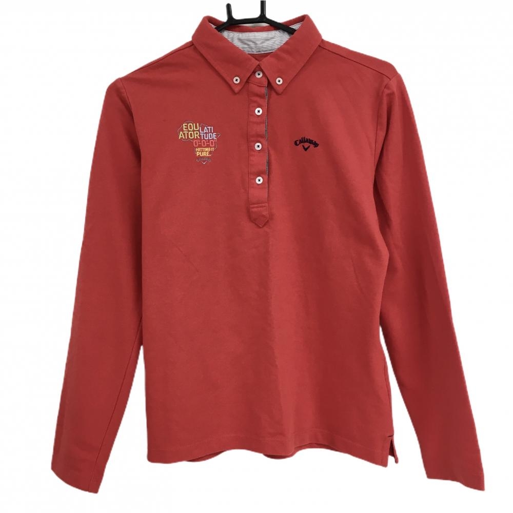 キャロウェイ 長袖ポロシャツ ピンク ロゴ白 前立て内側総柄 レディース L ゴルフウェア Callaway