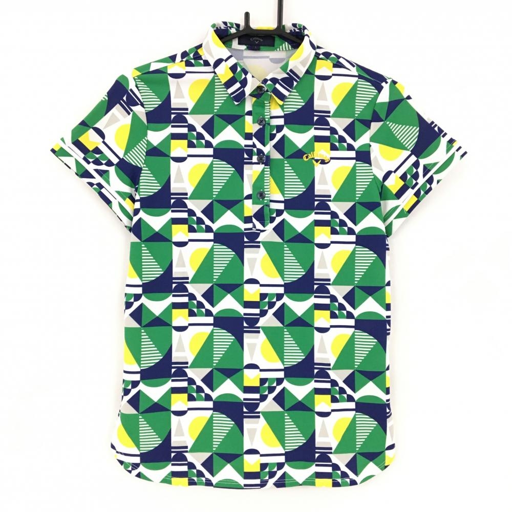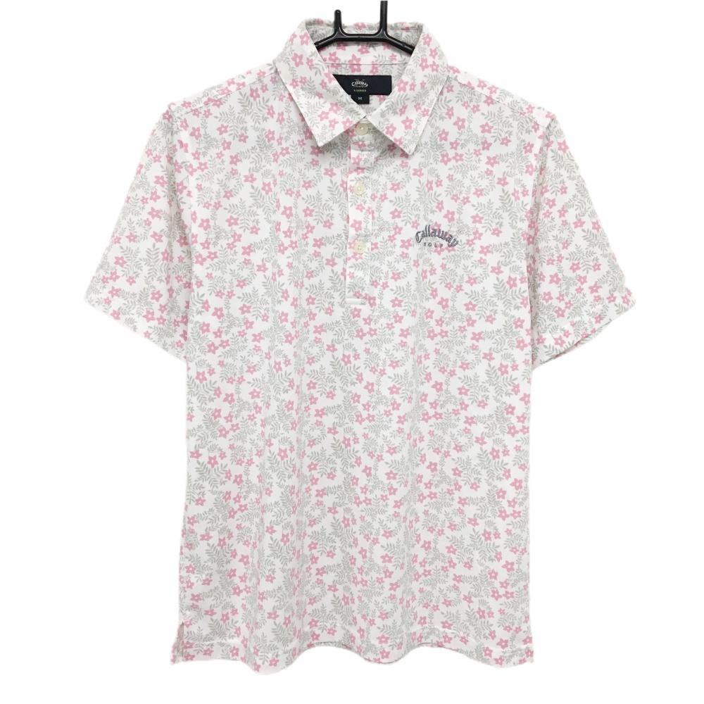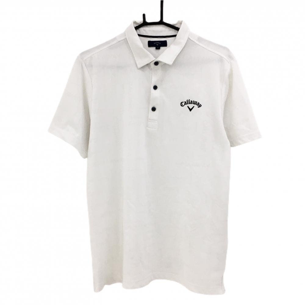 【超美品】キャロウェイ 半袖ブルゾン 白×グレー ダイヤ総柄 ハーフジップ 裏地メッシュ メンズ M ゴルフウェア Callaway