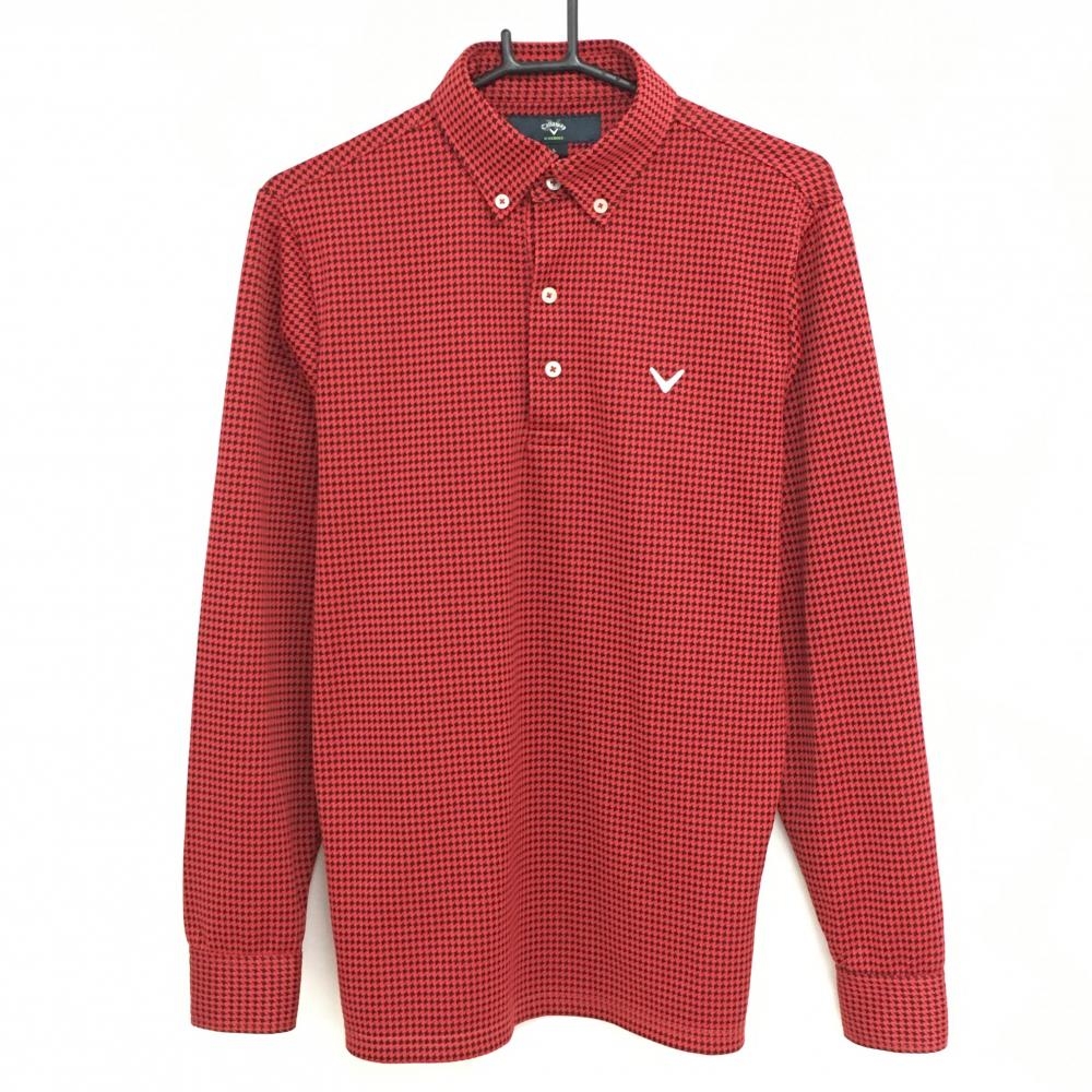 【美品】キャロウェイ 長袖ポロシャツ レッド×白 ストライプ ボタンダウン メンズ LL ゴルフウェア Callaway