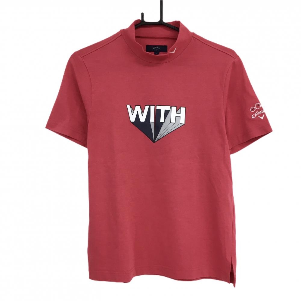 キャロウェイ タートルネックセーター ピンクレッド ケーブル編み ロゴ白 ウール混 ニット レディース L ゴルフウェア Callaway