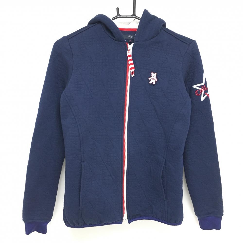 キャロウェイ 2WAYフード付ジャケット ネイビー×白 フードグレンチェック×星柄 裏起毛 ベア レディース L ゴルフウェア Callaway