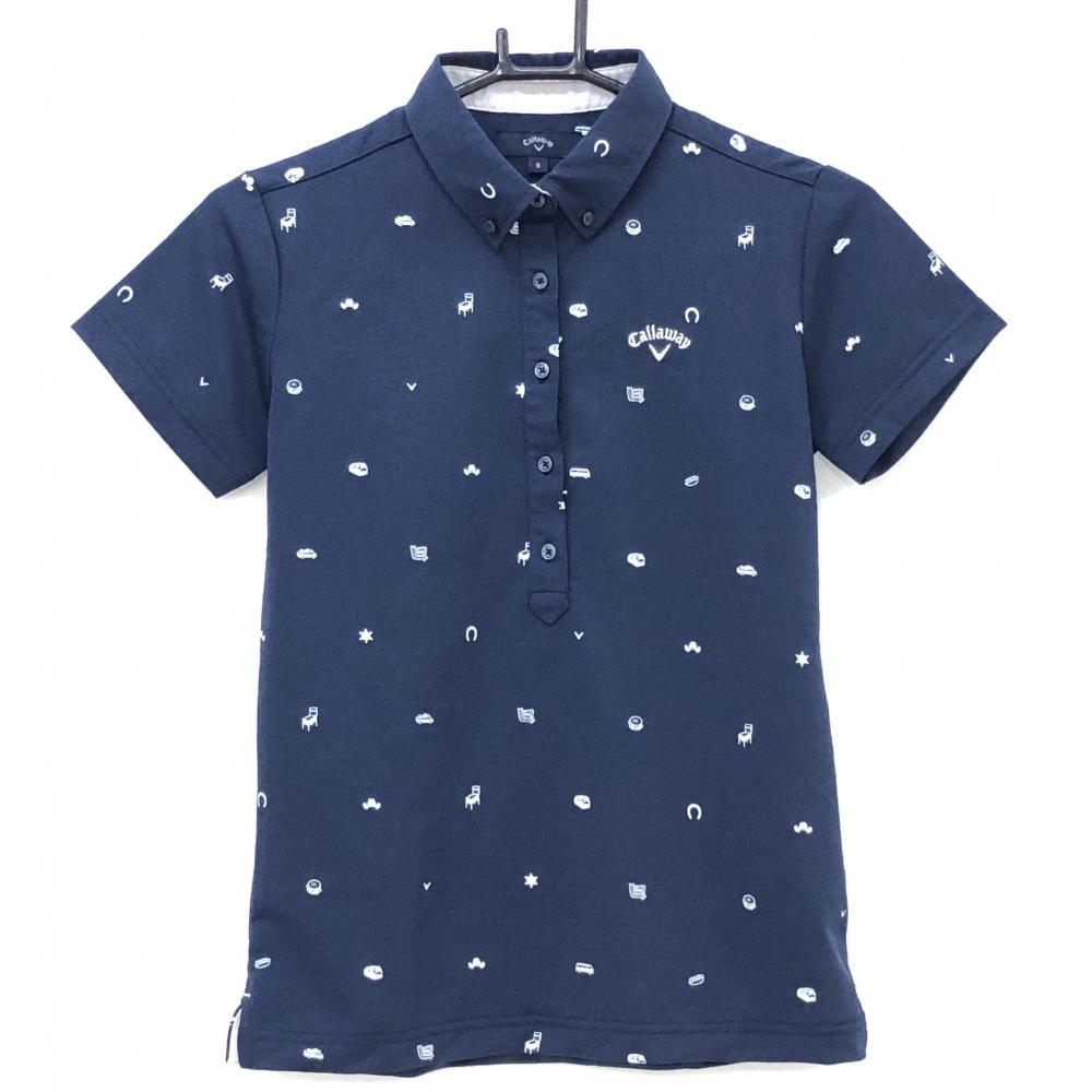 【超美品】キャロウェイ ニットジャケット 白×ネイビー 前身頃刺しゅう総柄 レディース L ゴルフウェア Callaway