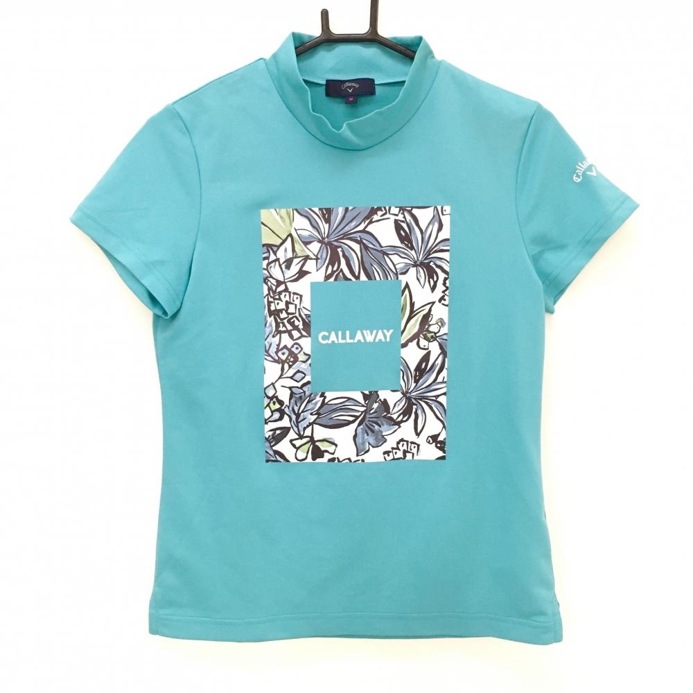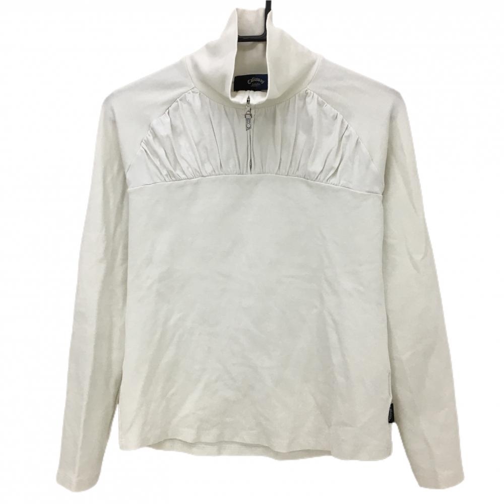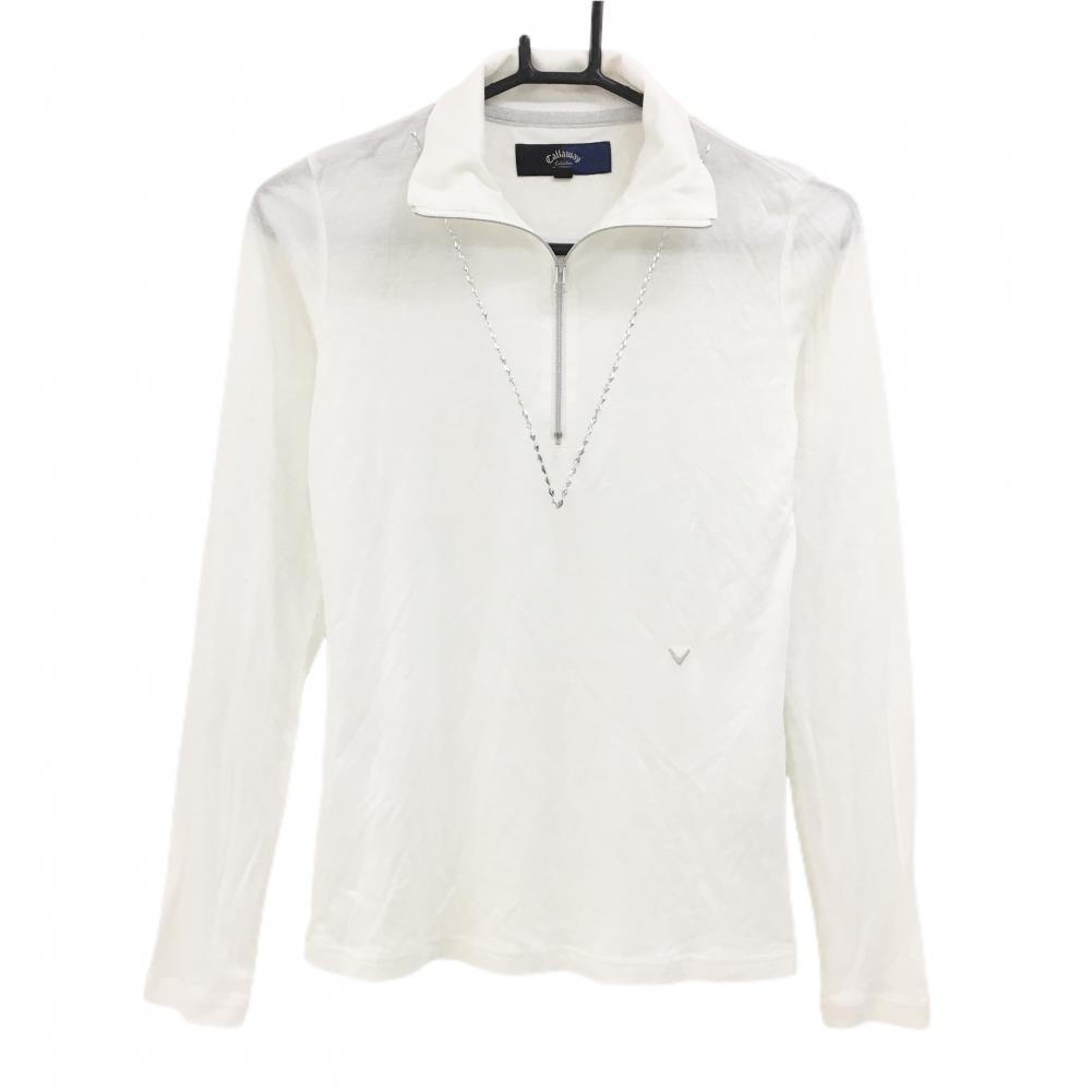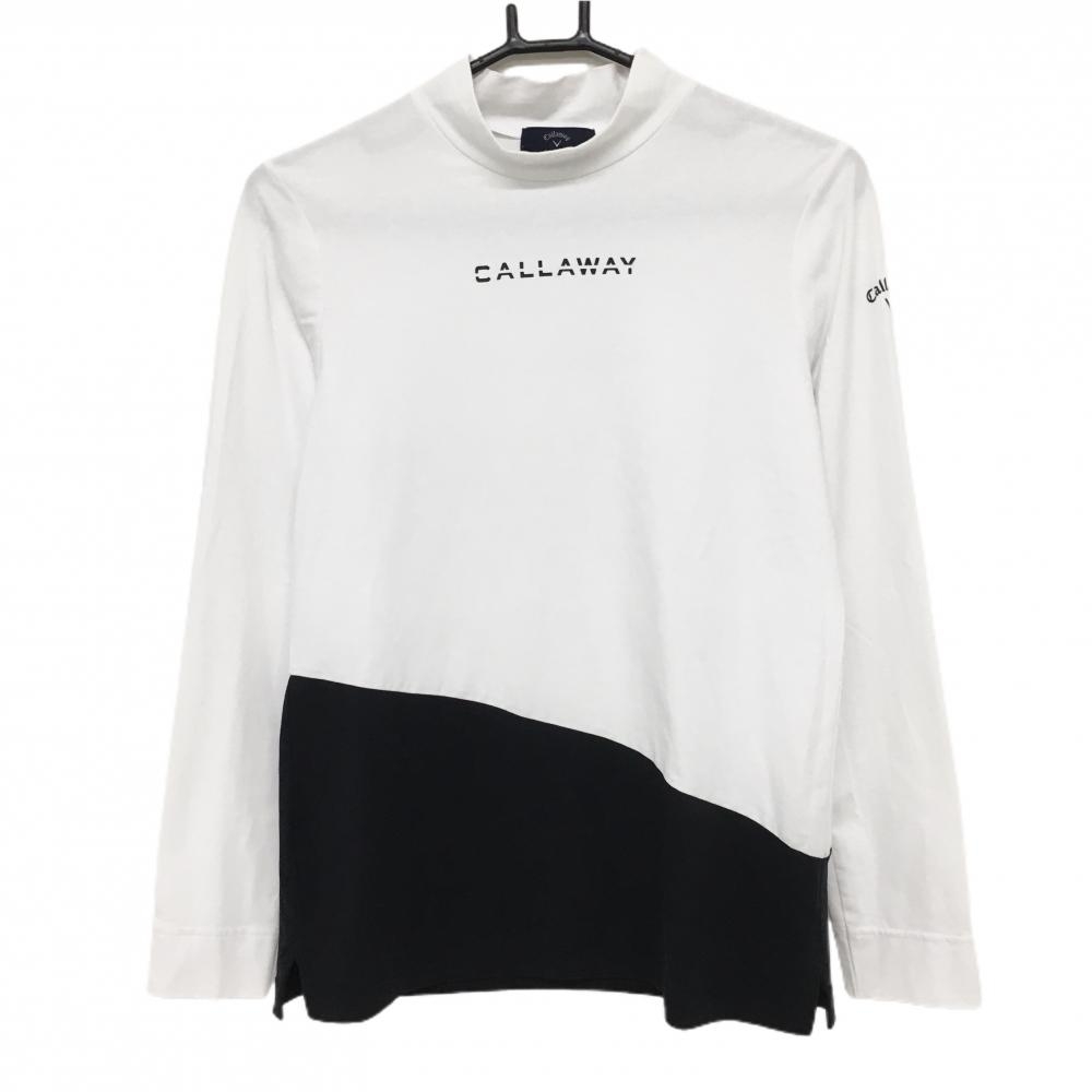 【超美品】キャロウェイ 長袖ハイネックシャツ 白 ネックラインストーンロゴ 表微起毛 レディース M ゴルフウェア Callaway
