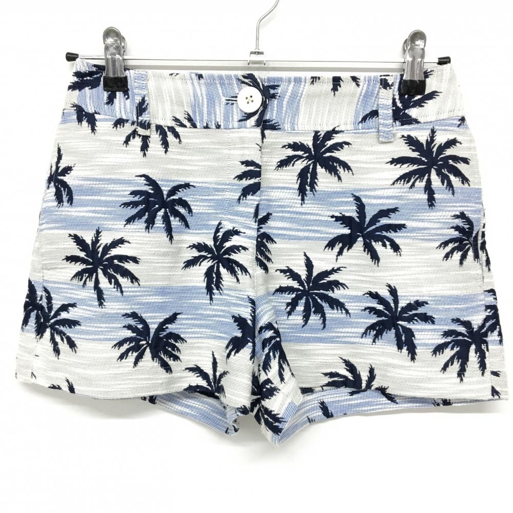 【超美品】キャロウェイ スカート 白×ブルーグレー リーフ総柄 ロゴ刺しゅう レディース M ゴルフウェア Callaway