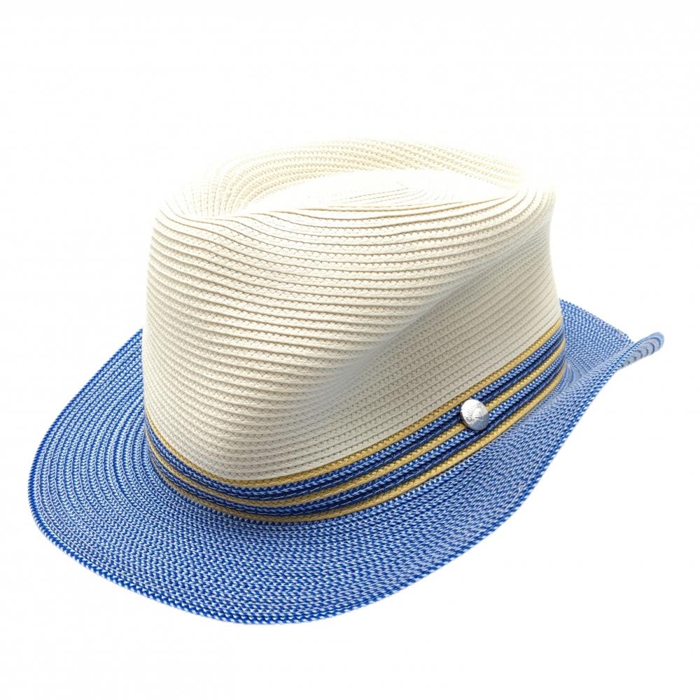 【超美品】キャロウェイ つば付きニット帽 ブルー×ネイビー ボンボン付き ロゴ刺しゅう FR ゴルフウェア Callaway