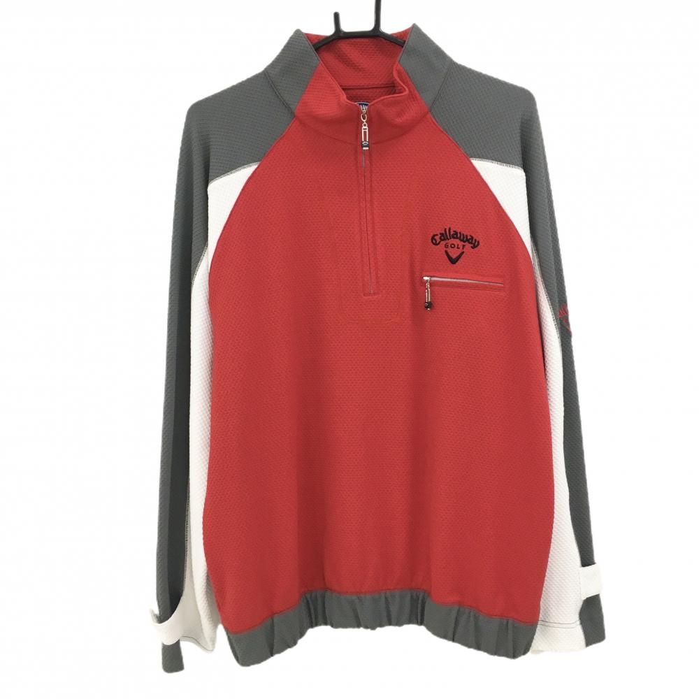 キャロウェイ 長袖ハイネックシャツ グレー ハーフジップ ロゴ黒 裏微起毛 メンズ L ゴルフウェア Callaway