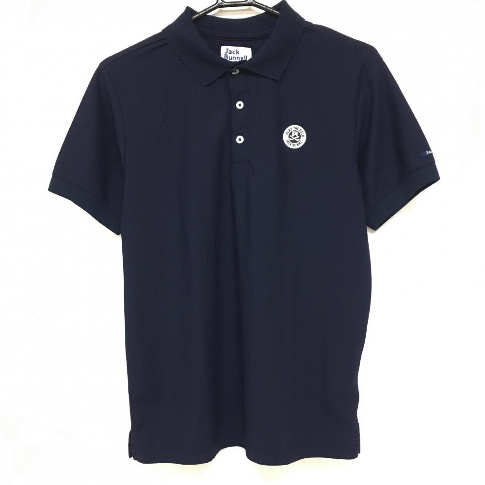 【美品】ジャックバニー 長袖ポロシャツ 白 ロゴネイビー 織生地 レディース 2(L) ゴルフウェア Jack Bunny