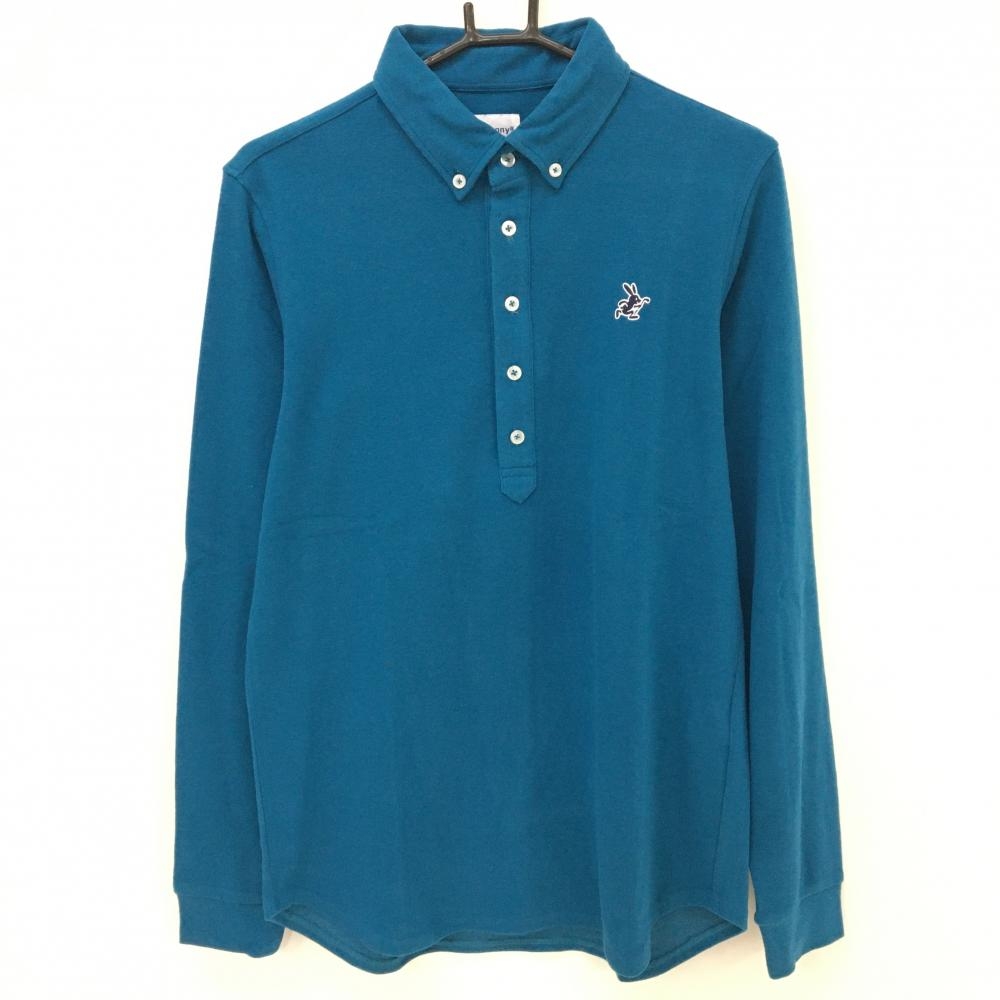 ジャックバニー 長袖ポロシャツ グリーン×ネイビー ロゴ総柄 ボタンダウン ストレッチ レディース 1(M) ゴルフウェア Jack Bunny