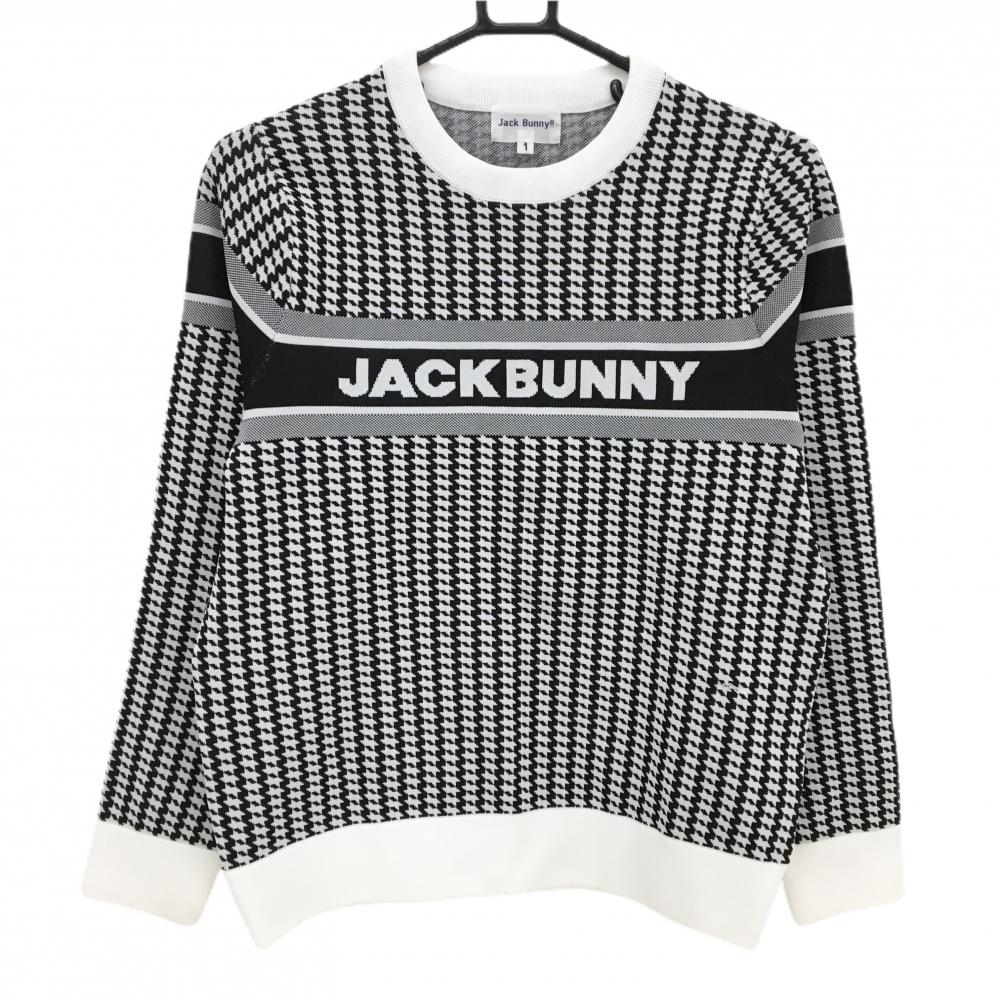 ジャックバニー セーター 白×黒 フロッキーワッペン ニット ウール混 レディース 2(L) ゴルフウェア Jack Bunny