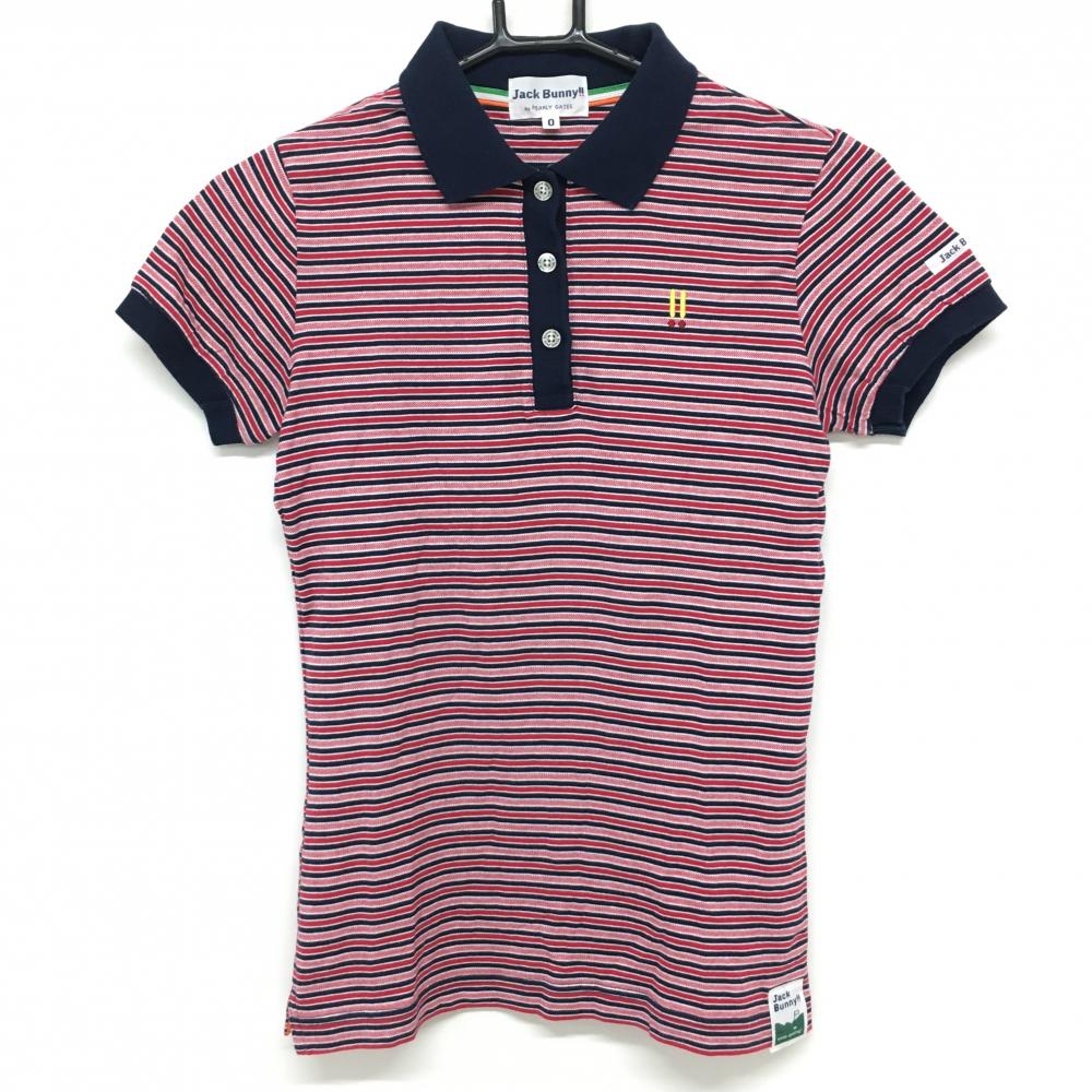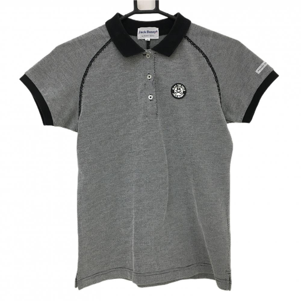 ジャックバニー 長袖ポロシャツ グレー×白 ボーダー 凹凸生地 レディース 0(S) ゴルフウェア Jack Bunny
