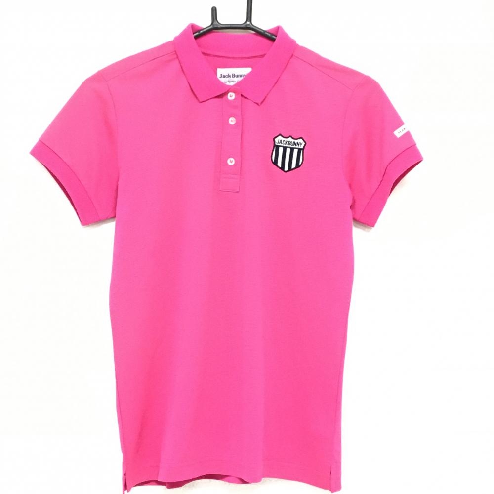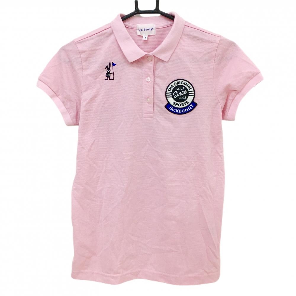 【美品】ジャックバニー セーター ピンク×白 ネックロゴ 袖星刺しゅう ポリエステル100% レディース 1(M) ゴルフウェア Jack Bunny