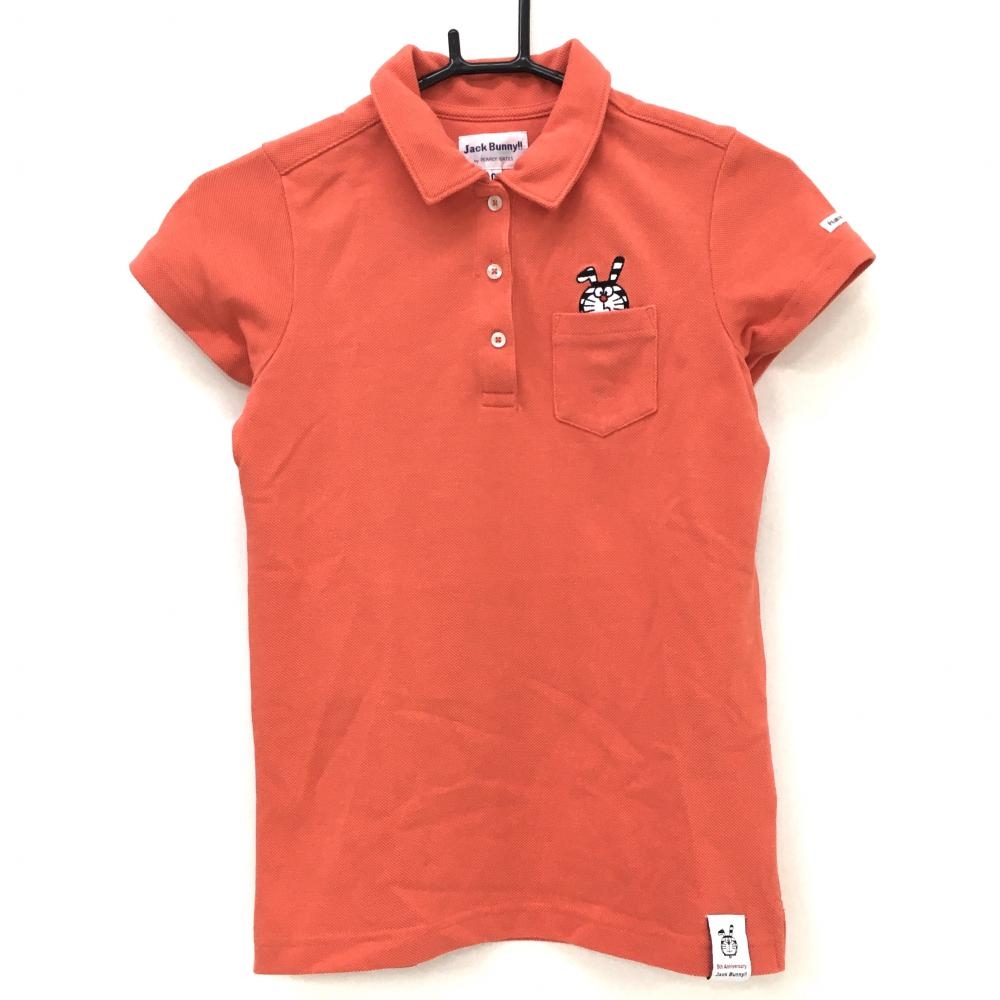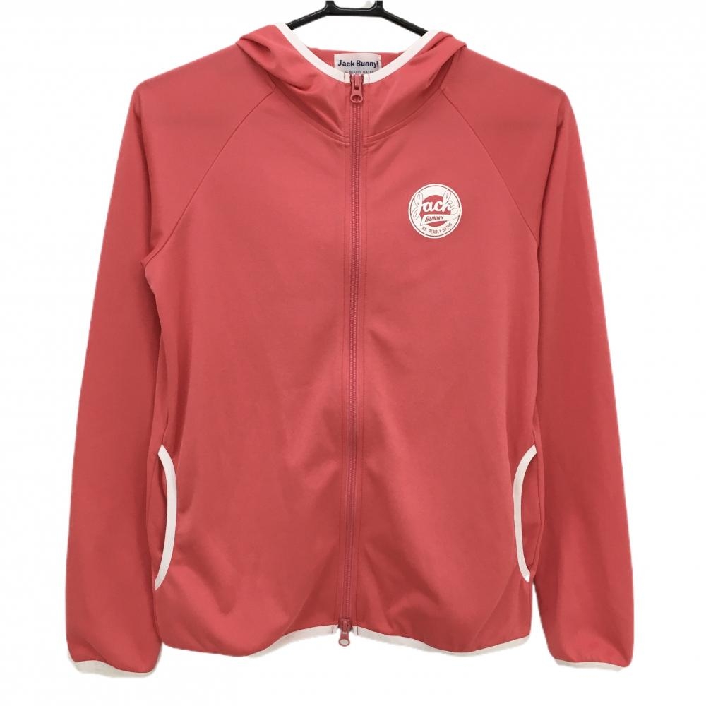 【美品】ジャックバニー パーカー オレンジ×ブラウン 地模様 ロゴワッペン 裏起毛 レディース 0(S) ゴルフウェア Jack Bunny