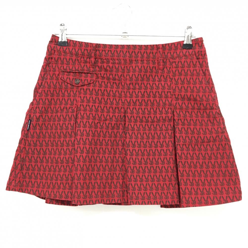ジャックバニー スカート ブラウン×レッド ベルト部ライン 裾一部プリーツ レディース 1(M) ゴルフウェア Jack Bunny