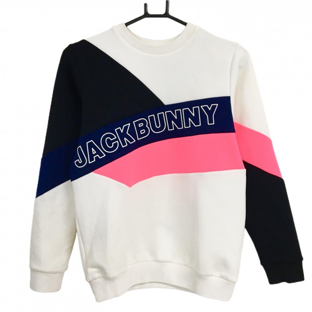 【美品】ジャックバニー トレーナー 黒 ロゴ白 メッシュポケット レディース 0(S) ゴルフウェア Jack Bunny