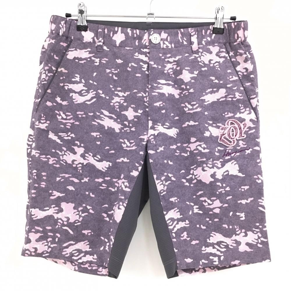 ゾーイ ショートパンツ グレー×ライトグレー ストライプ 裏地付き レディース 38(M) ゴルフウェア ZOY