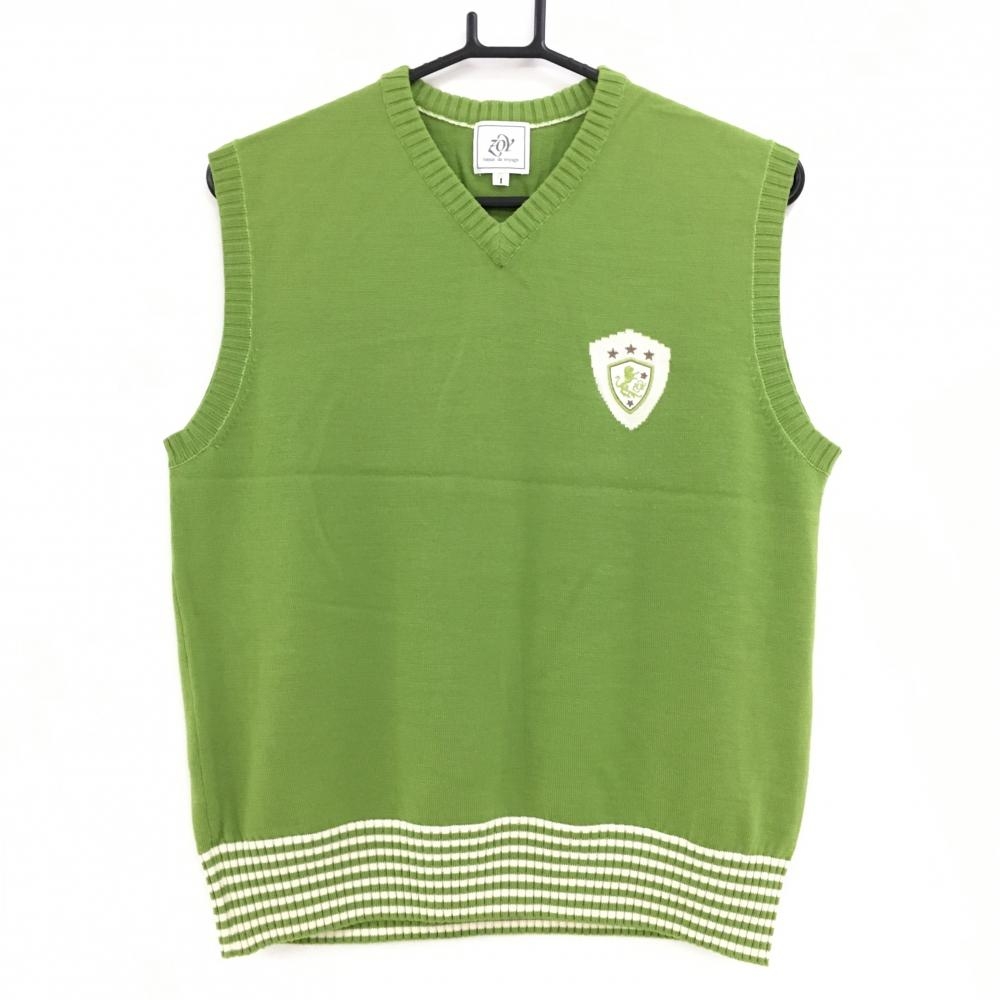 【超美品】ゾーイ ニットベスト ライトグレー×ライトブルー ボーダー ロゴ刺しゅう メンズ サイズ表記無し ゴルフウェア ZOY