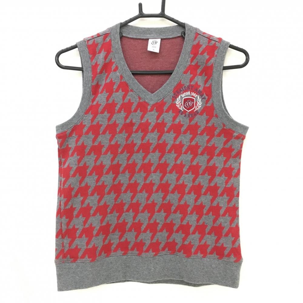 ゾーイ 長袖ハイネックシャツ レッド×グレー系 胸ロゴ 色褪せ、胸汚れ、ネック毛羽立ち少・跡あり レディース 38(M) ゴルフウェア ZOY
