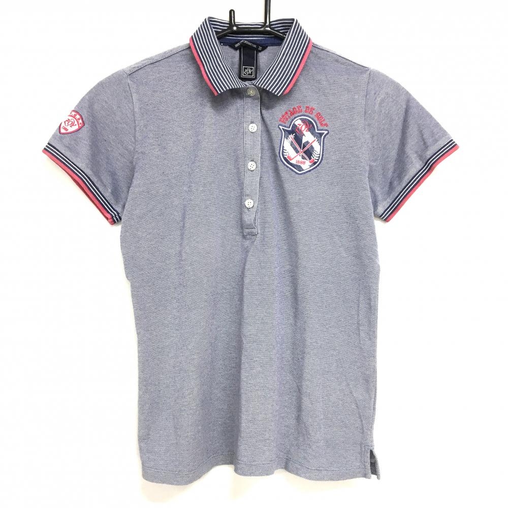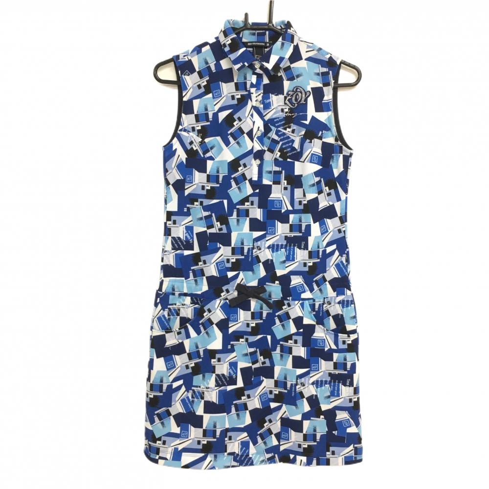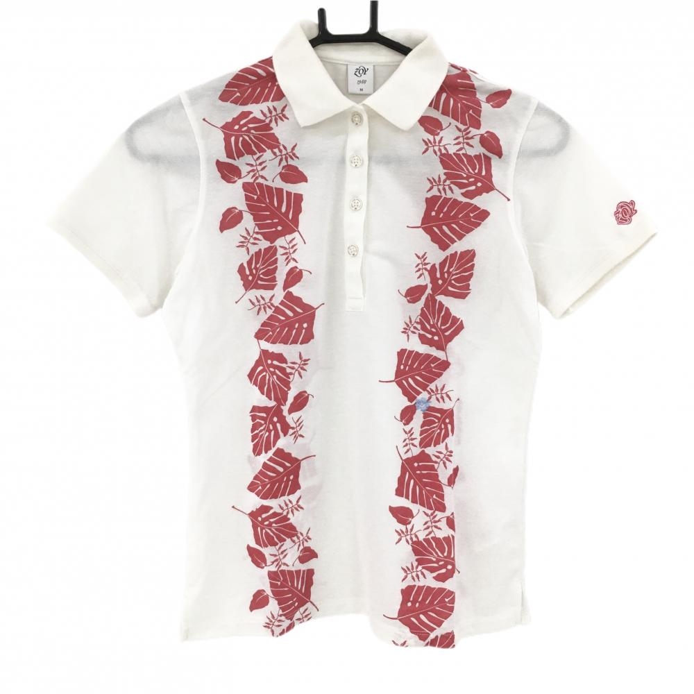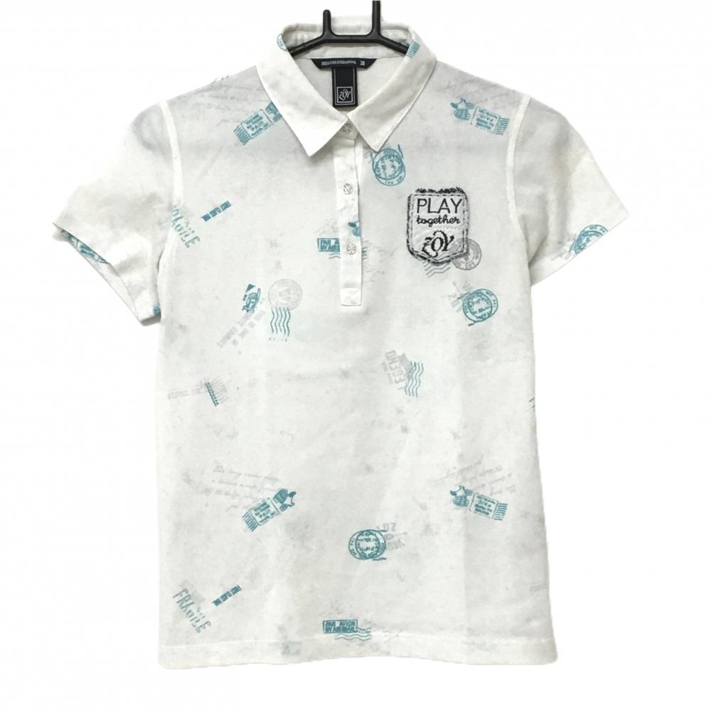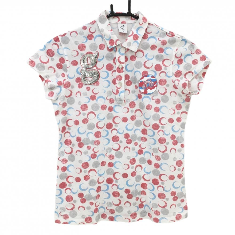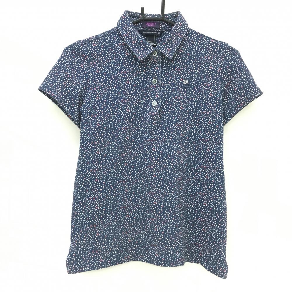 【美品】ゾーイ 半袖ポロシャツ 白×ブルー×ピンク系 総柄 LIBERTY レディース 38(M) ゴルフウェア ZOY