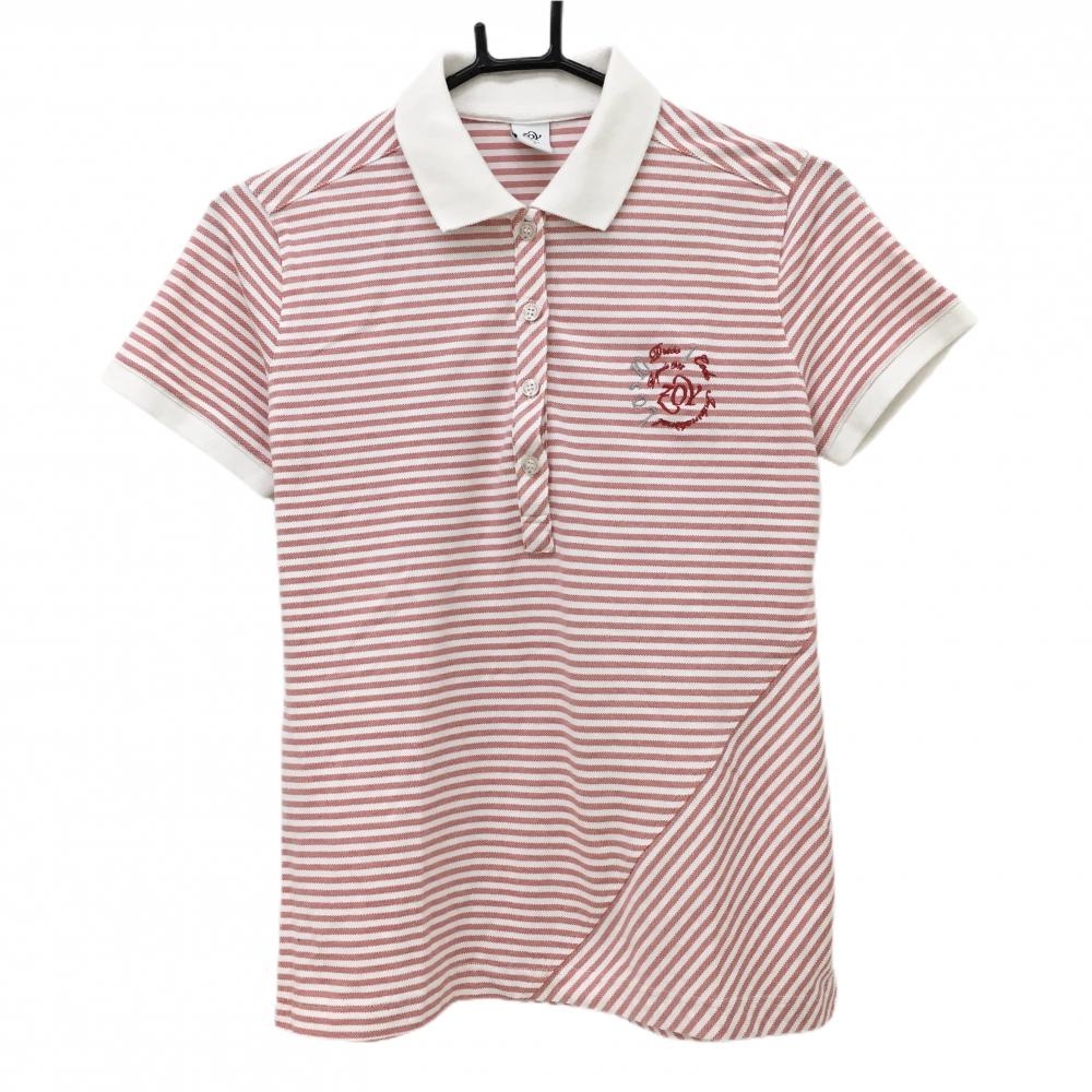 【美品】ゾーイ 半袖ポロシャツ 白×ライトピンク×ブラウン 胸ボーダー コットン100% メンズ 3(L) ゴルフウェア ZOY