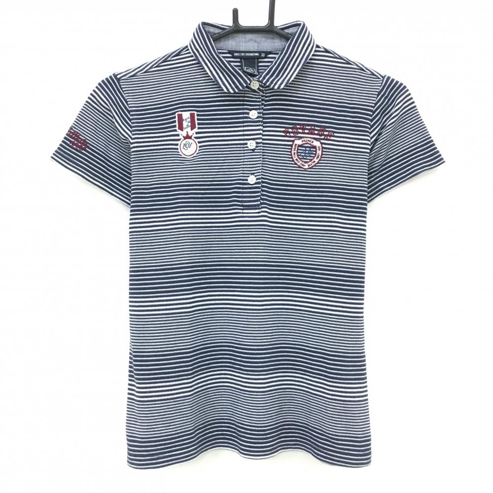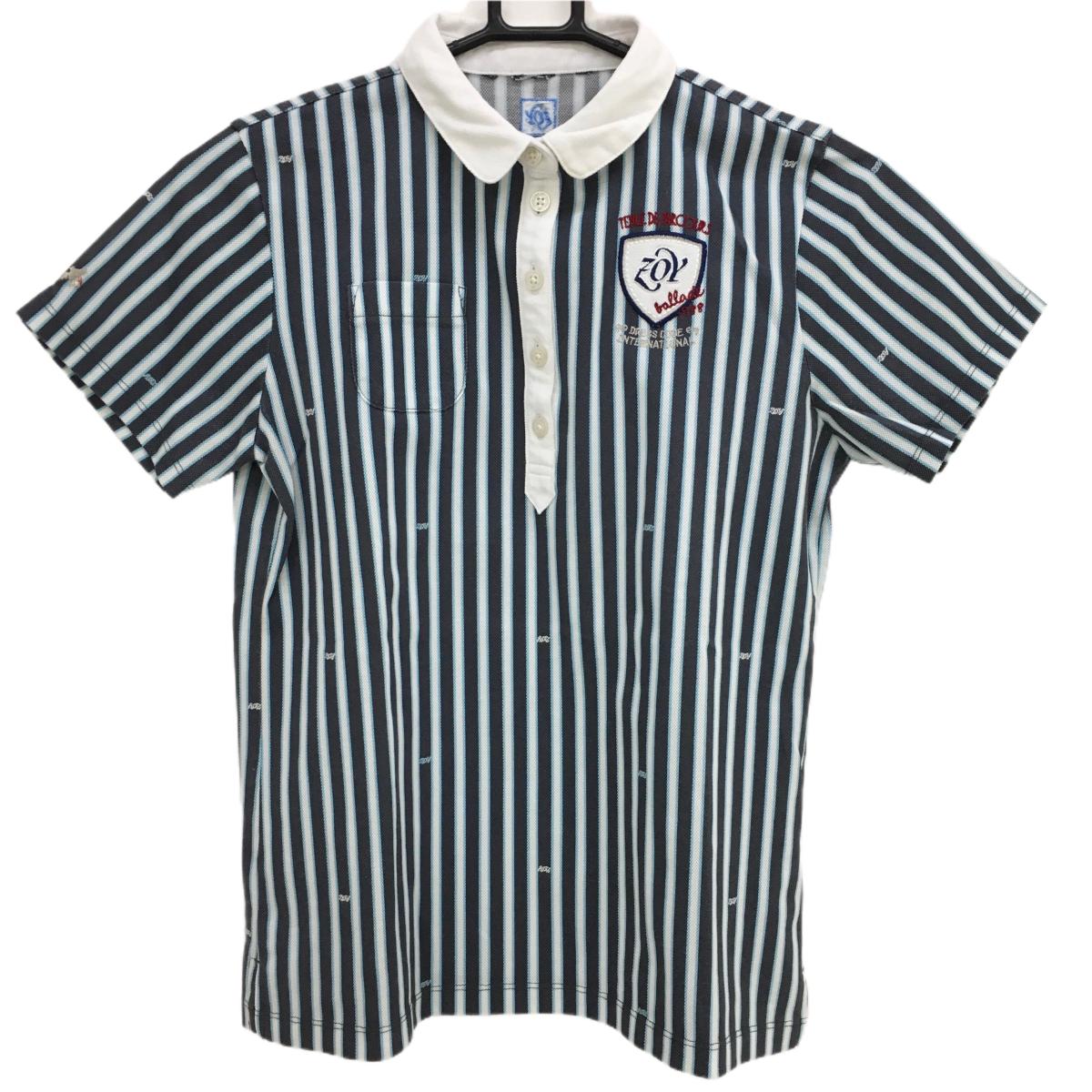 ゾーイ 半袖ポロシャツ 白×ネイビー 一部ボーダー 胸ロゴ メンズ 2(M) ゴルフウェア ZOY