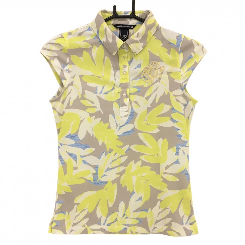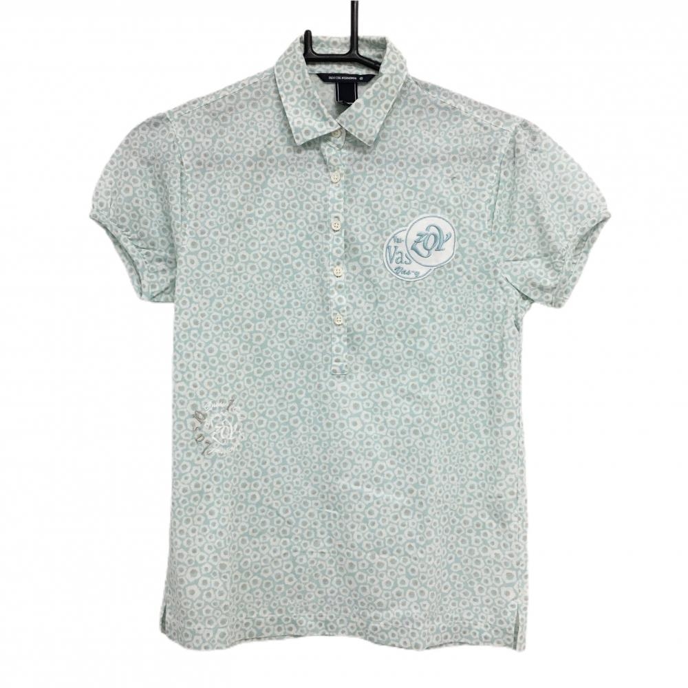 【美品】ゾーイ 半袖ポロシャツ ネイビー×グリーン×イエロー 総柄 レディース 38(M) ゴルフウェア ZOY