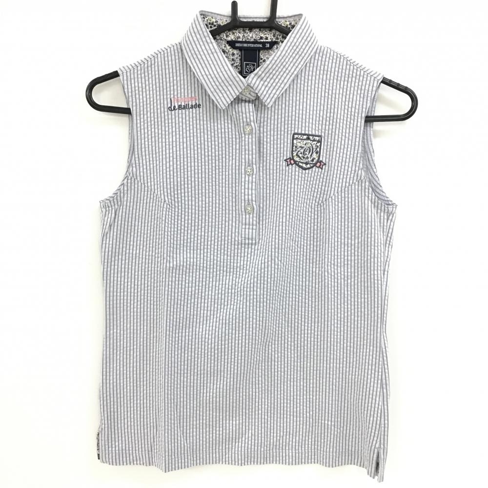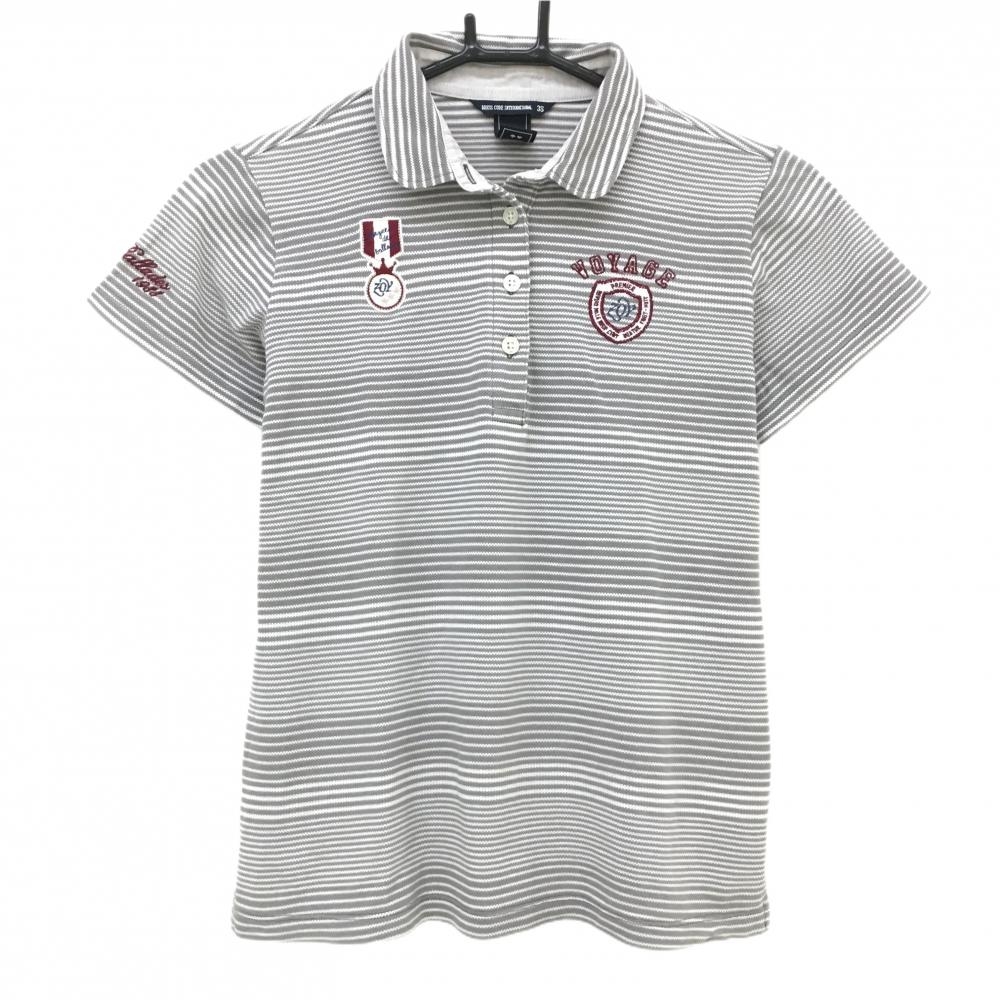 【超美品】ゾーイ 半袖ポロシャツ 白×グレー ボーダー ロゴ刺しゅう メンズ 2(M) ゴルフウェア ZOY