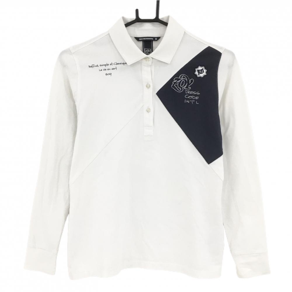 【新品】ゾーイ 長袖ポロシャツ ネイビー×白 ロゴ刺しゅう バイカラー レディース 38(M) ゴルフウェア ZOY