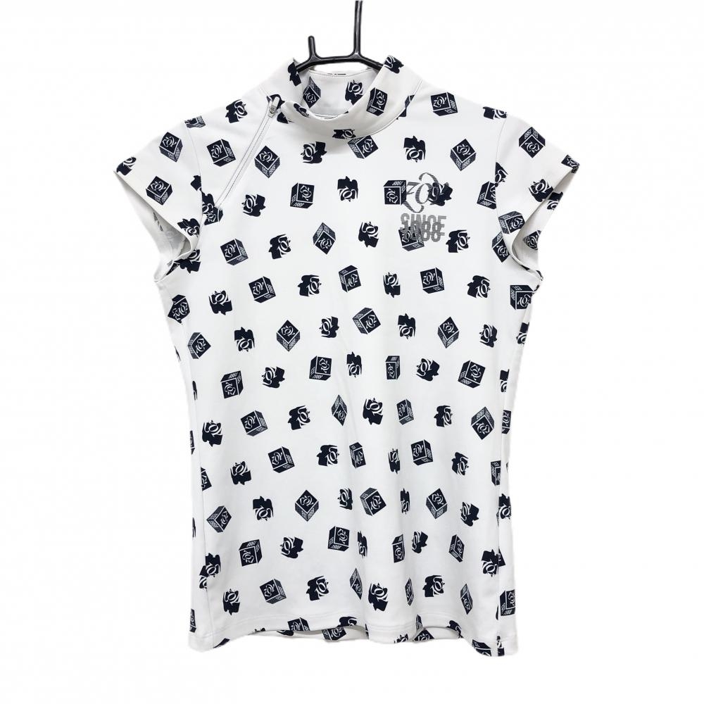 ゾーイ 長袖ハイネックシャツ 白×ピンク×ネイビー 総柄 胸ロゴ レディース M ゴルフウェア ZOY