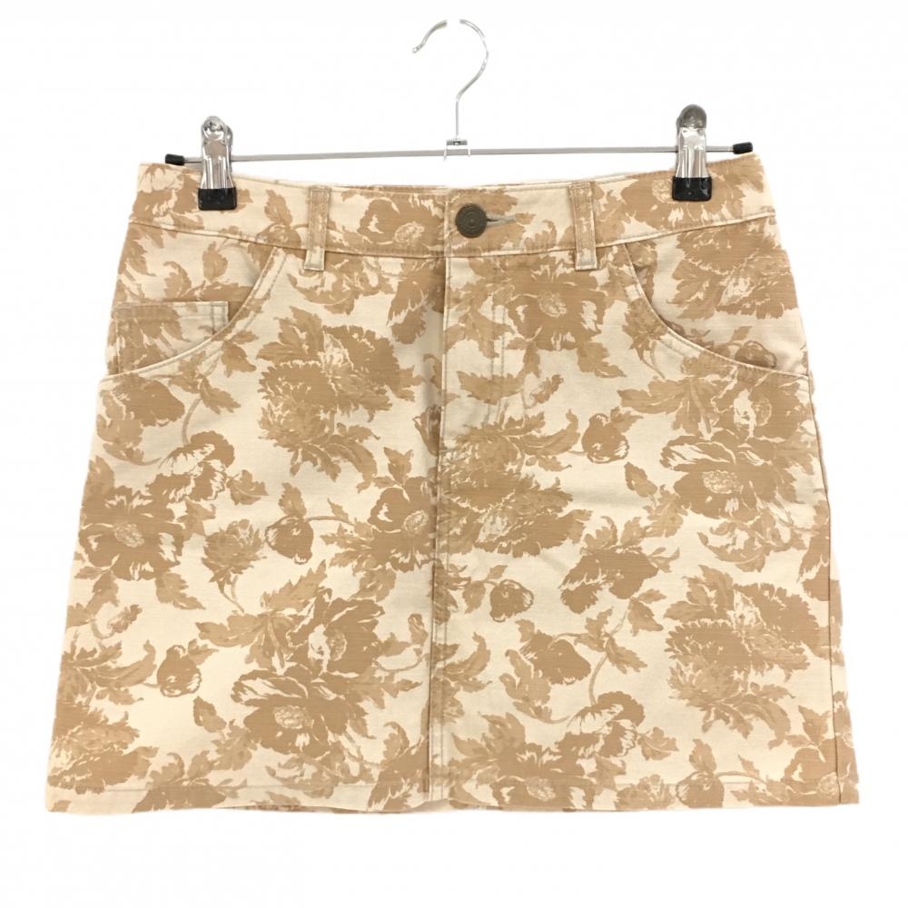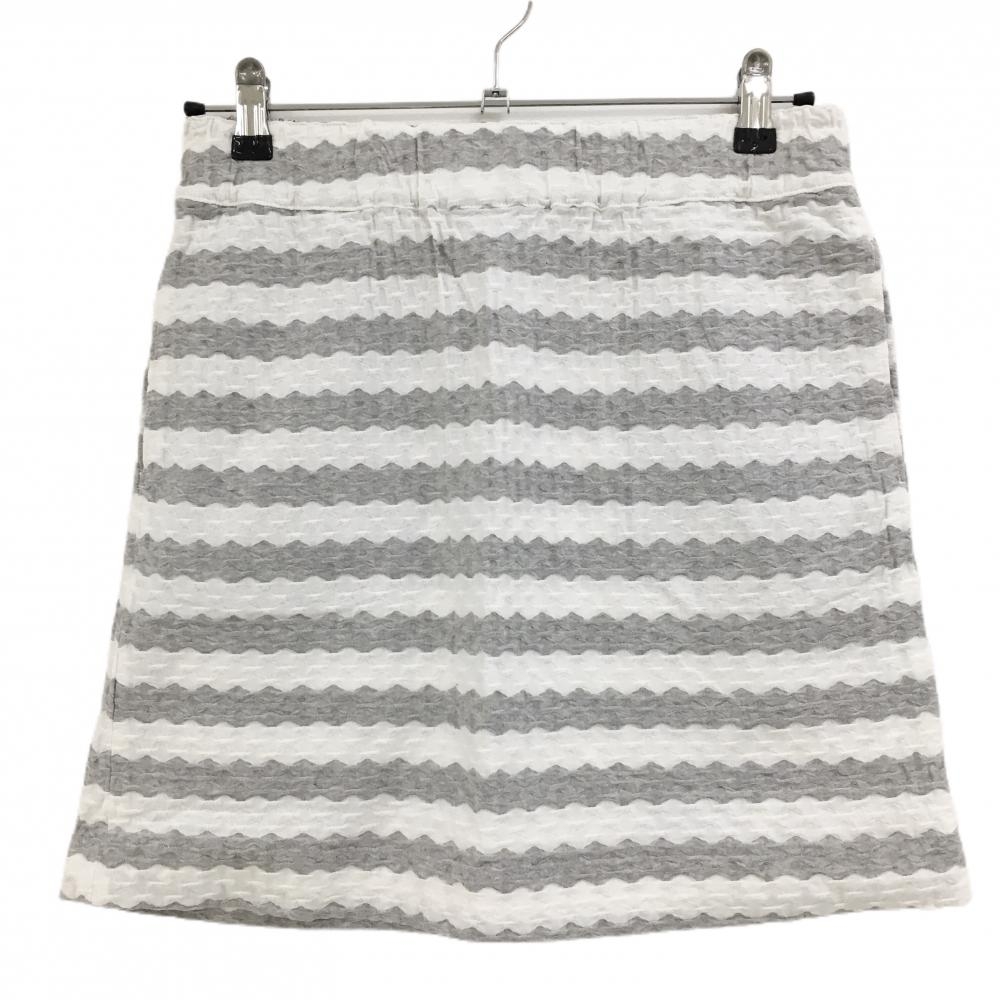 【美品】ゾーイ ニットスカート アイボリー×グレー 総柄 羊毛混 蓄熱裏地 ウエストゴム レディース S ゴルフウェア ZOY