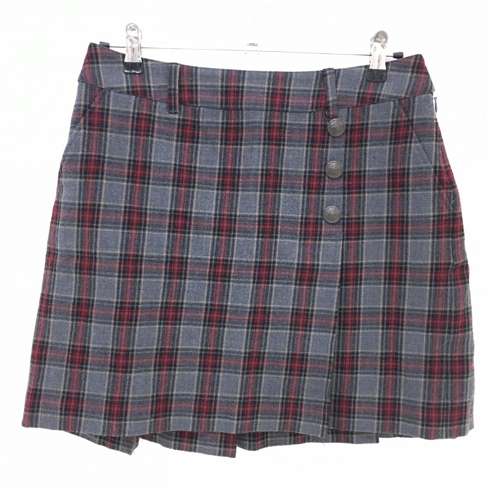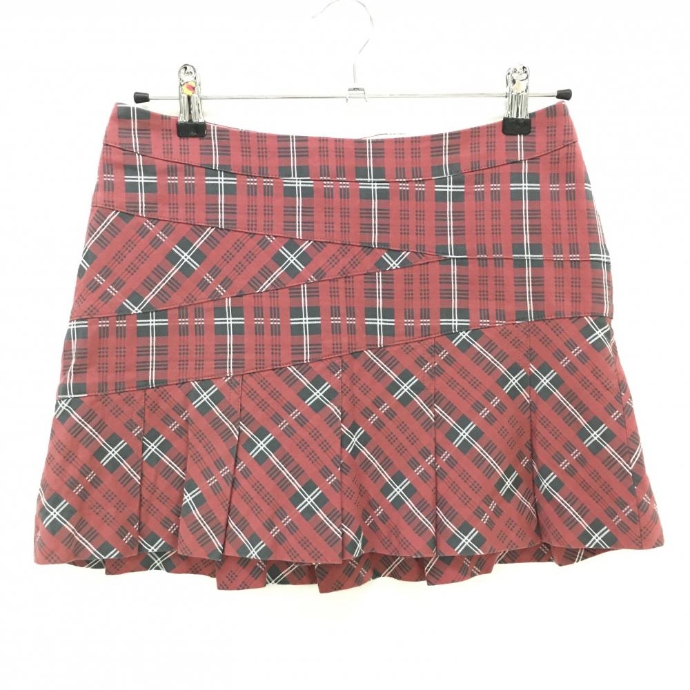 ゾーイ キュロットスカート レッド×ブラウン系 チェック フロントベルト レディース 38(M) ゴルフウェア ZOY