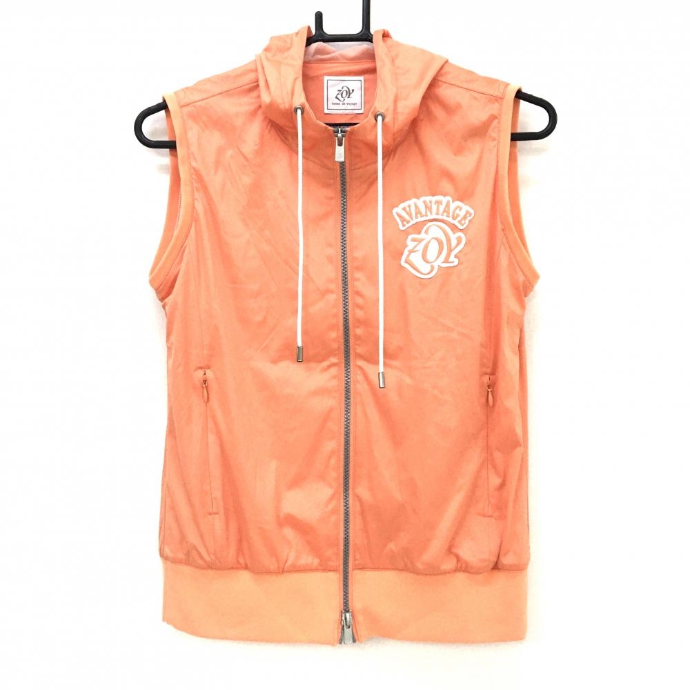 【美品】ゾーイ フード付きベスト サーモンピンク系×白 パイル地調 ボタン 胸ロゴ レディース 38(M) ゴルフウェア ZOY