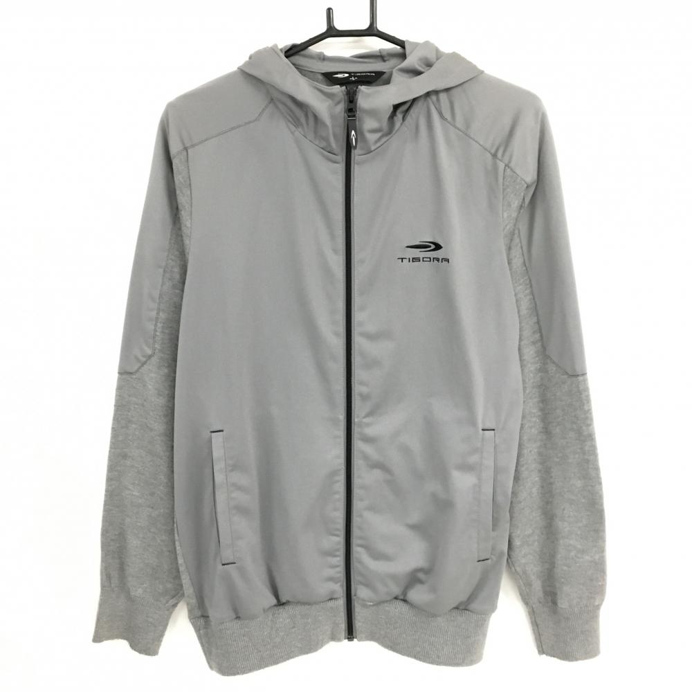 【美品】ティゴラ ニットジップパーカー グレー×黒 異素材切替 メンズ L ゴルフウェア TIGORA
